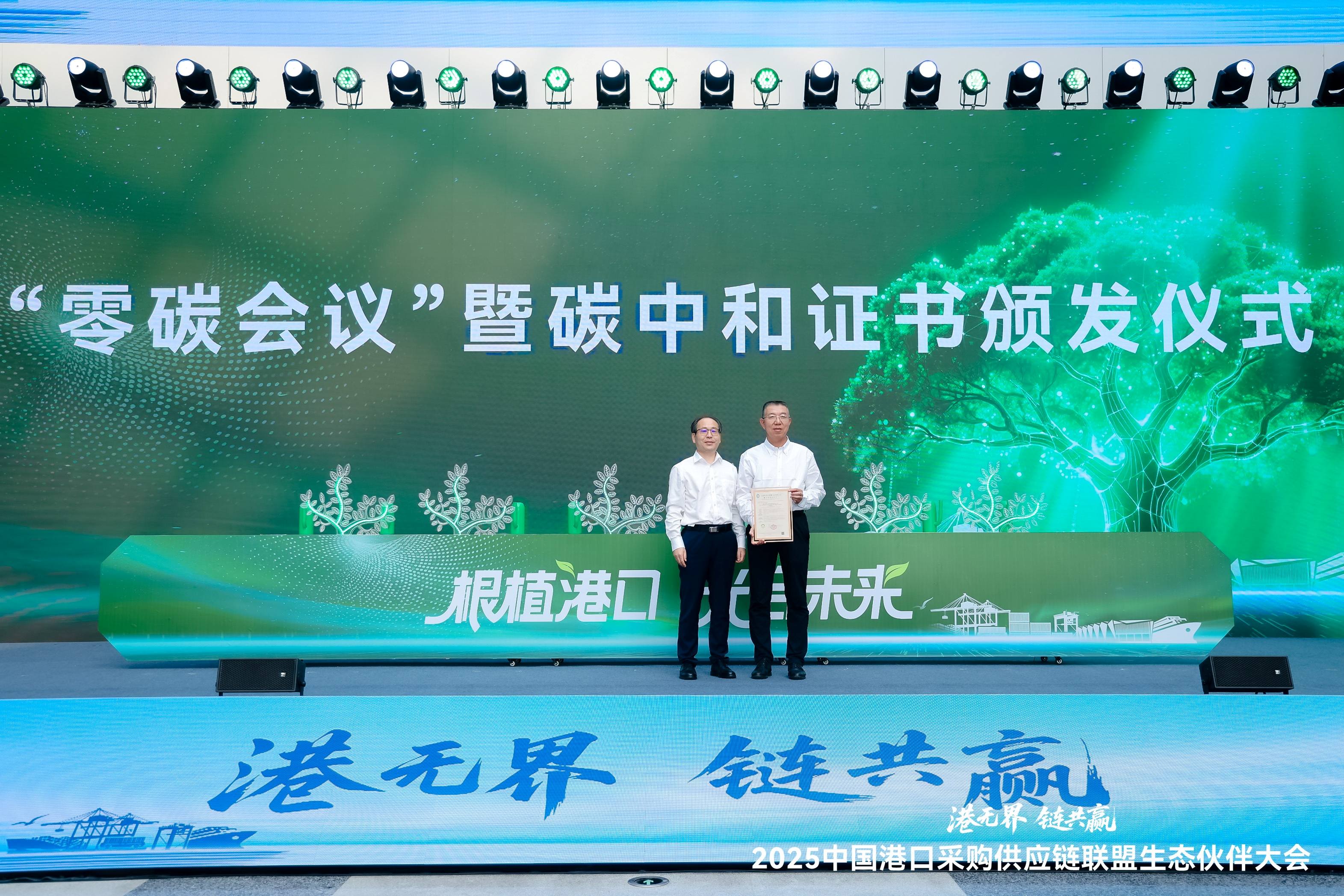 9月10日,由中国港口采购供应链联盟、山东省港口集团有限公司共同主办的中国港口采购供应链联盟生态伙伴大会在济南召开。会议旨在积极推进港口绿色供应链生态建设,凝聚生态伙伴力量,共建共享供应链创新成果,致力于打造一个高效、开放、共赢的港口采购供应链生态体系。国内各大港口集团、行业协会、政企机构等领导参会。公司党委委员、副总经理付治深受邀参会,代表CCSC出席并为大会颁发碳中和证书。