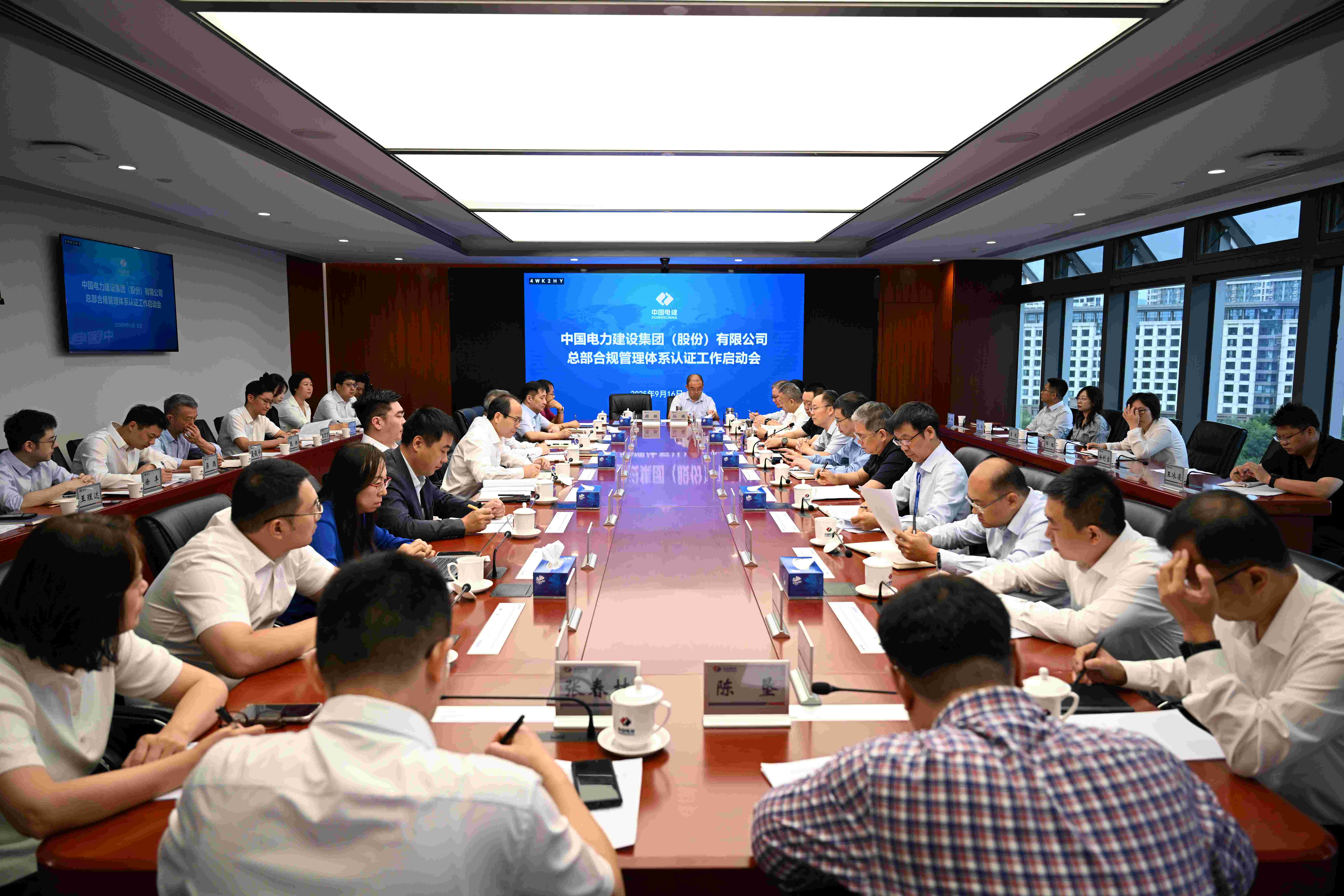 9月16日,中国电建召开了合规体系建设启动会,中国电建副总经理陈观福及各部门负责人,认证公司副总经理付治深、北京分公司总经理姜中君及相关部门负责人等参会。