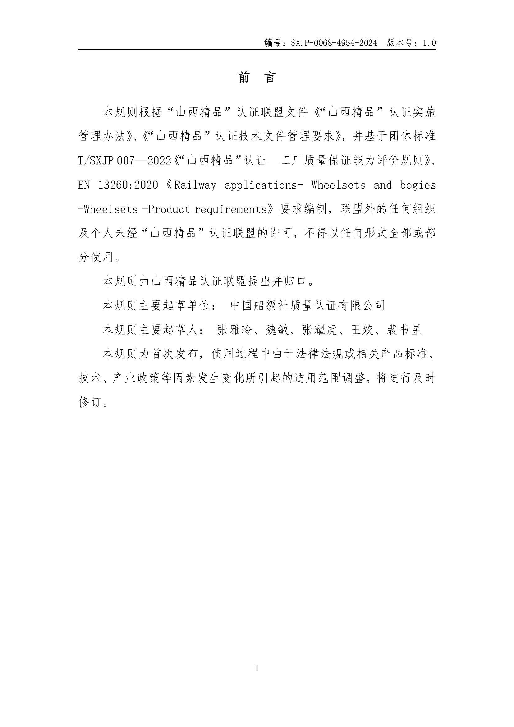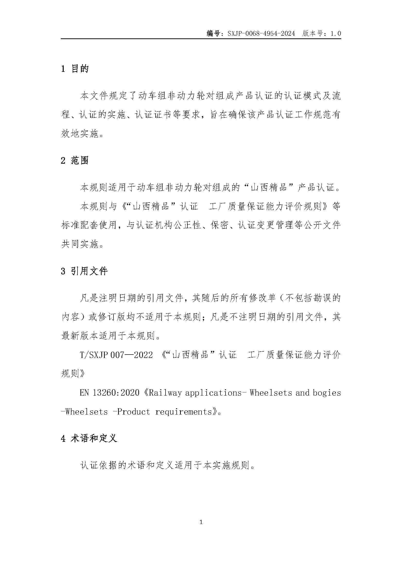SXJP-0068-4954-2024山西精品认证实施规则动车组非动力轮对组成
