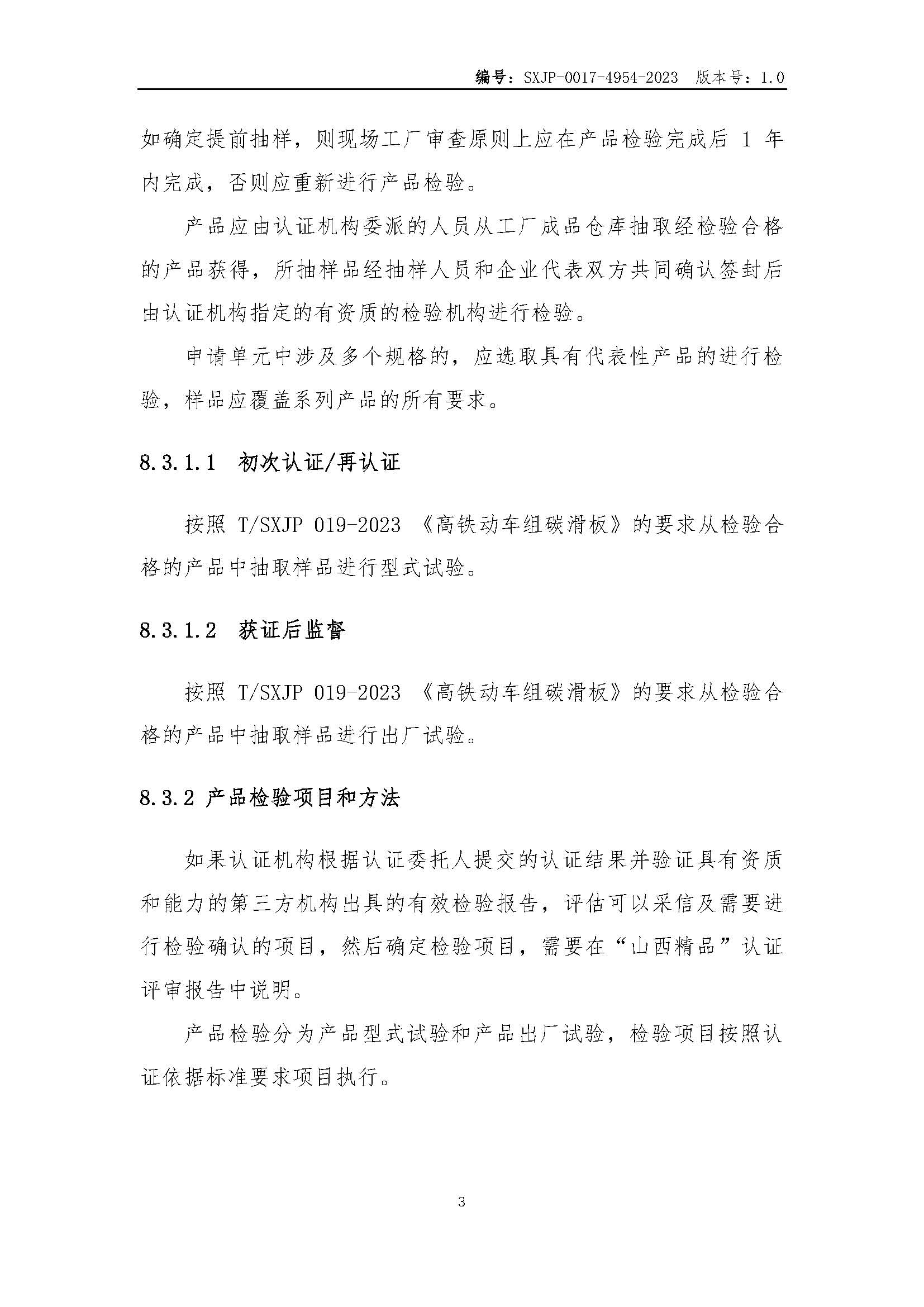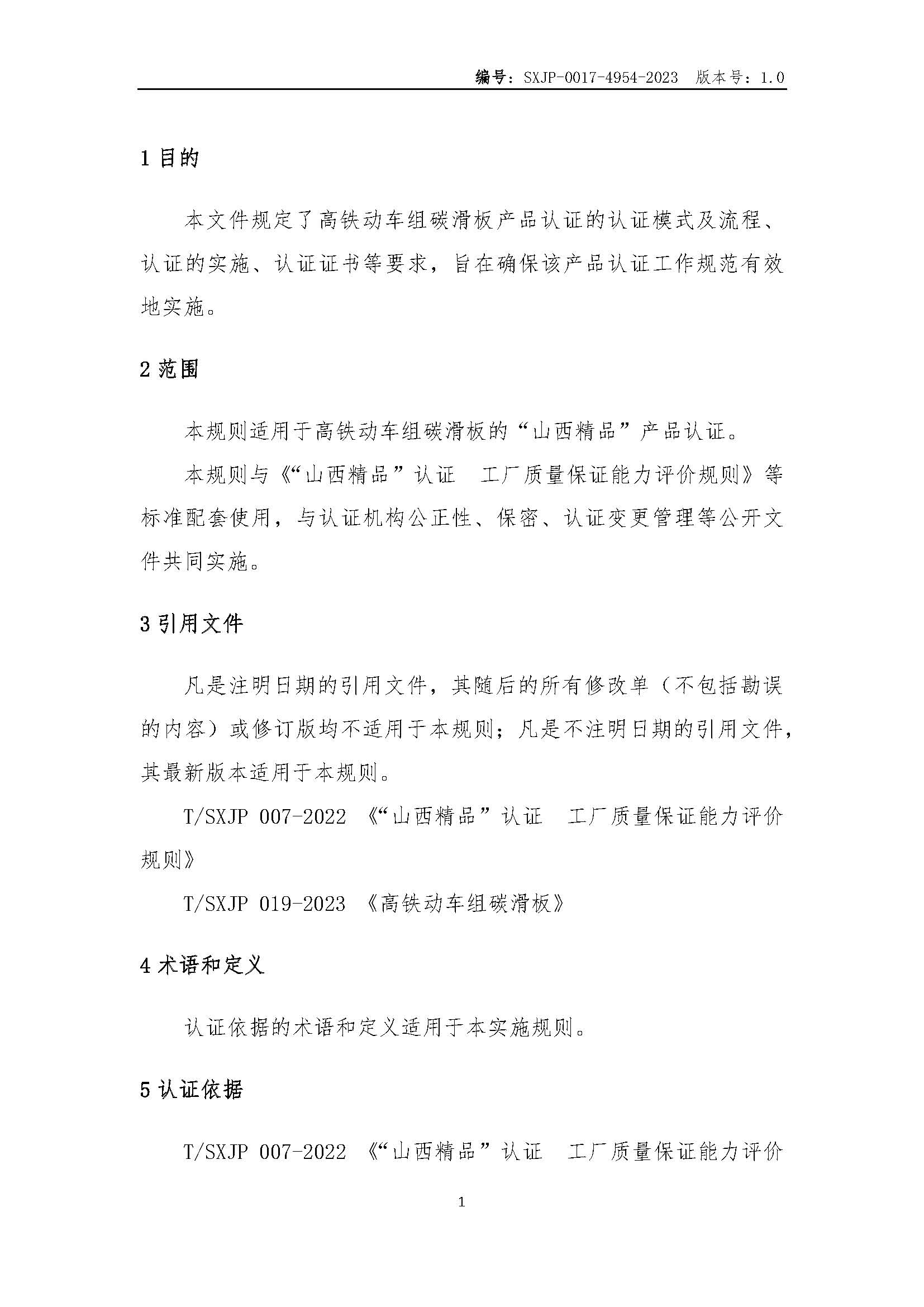 SXJP-0017-4954-2023“山西精品”认证实施规则高铁动车组碳滑板