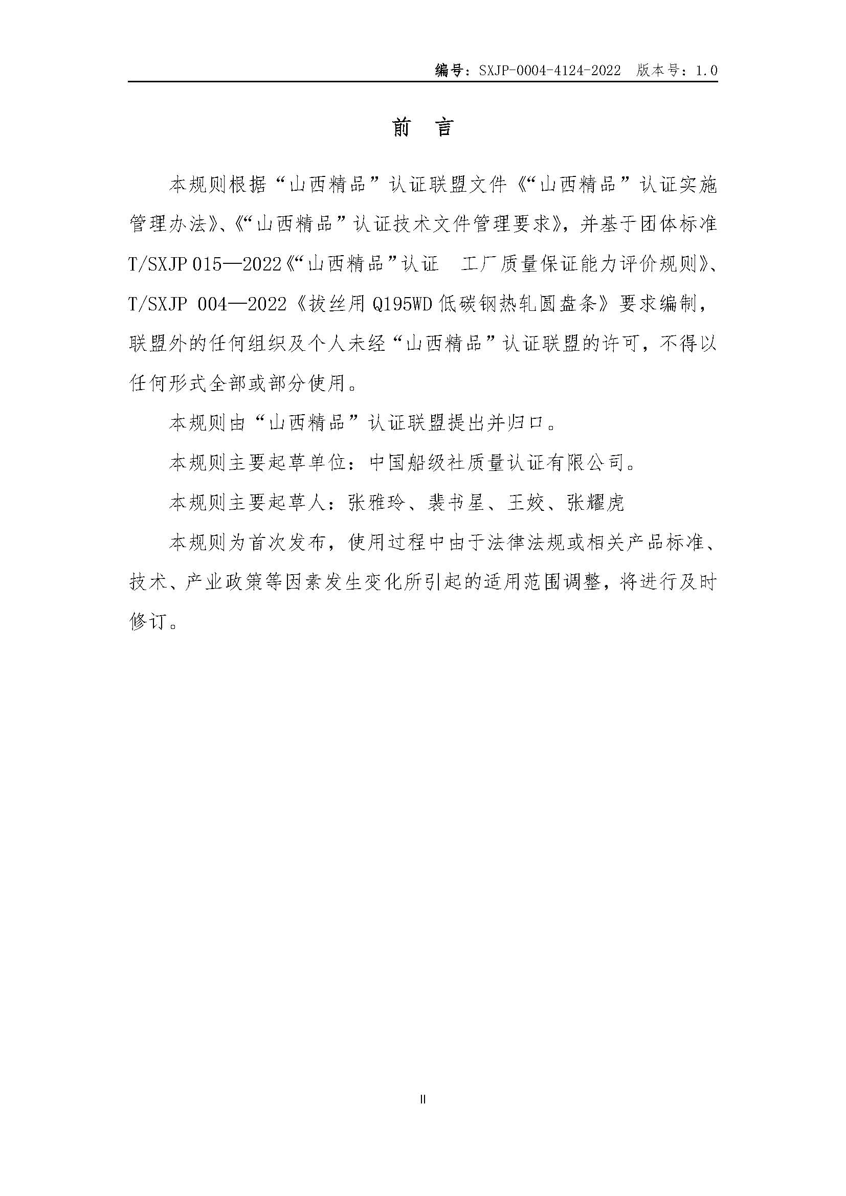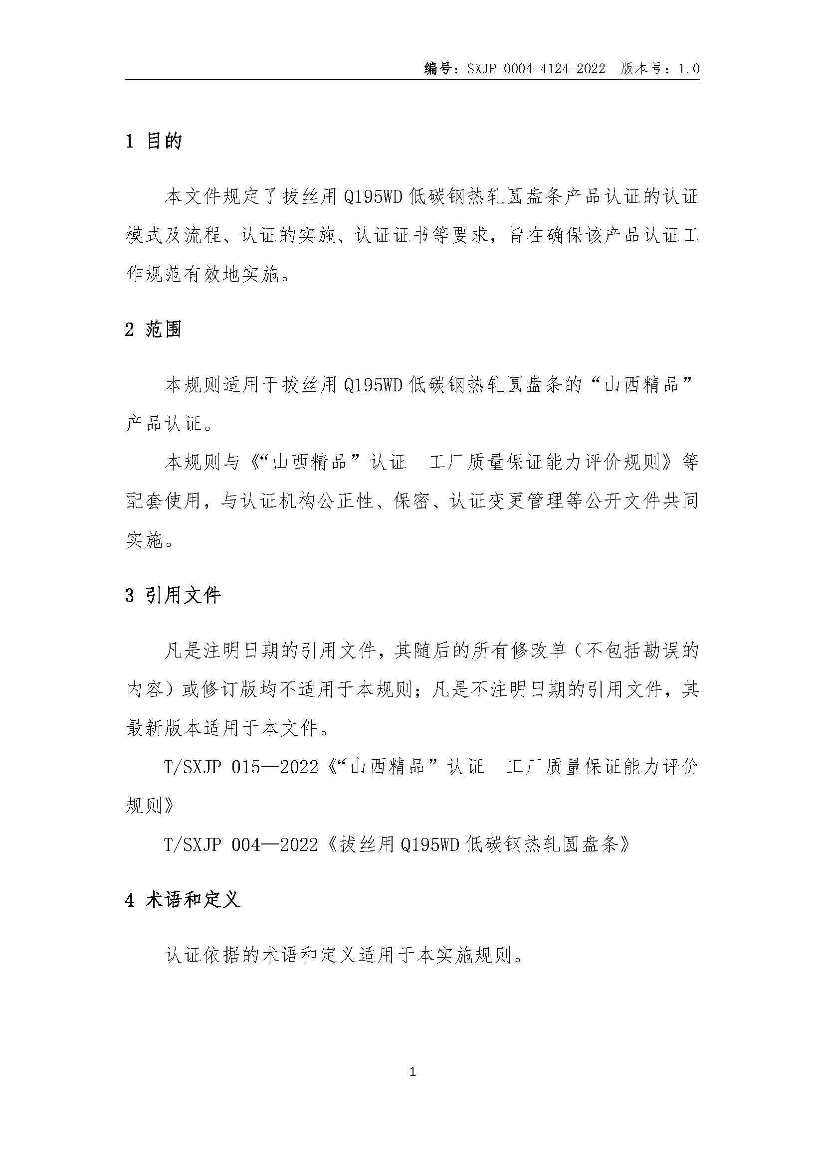 SXJP-0004-4124-2022“山西精品”认证实施规则拔丝用Q195WD低碳钢热轧圆盘条