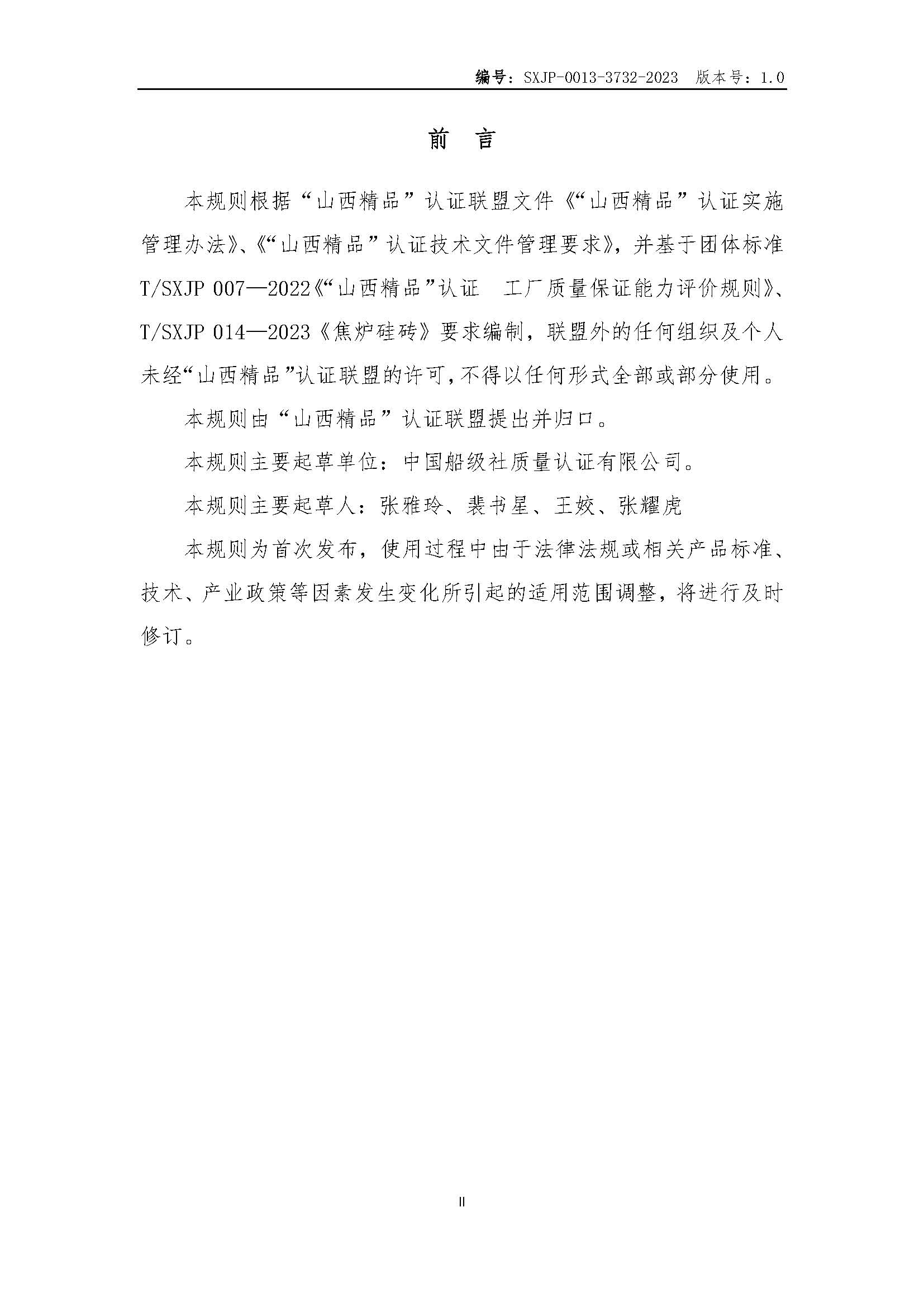 SXJP-0013-3732-2023-“山西精品”认证实施规则-焦炉硅砖