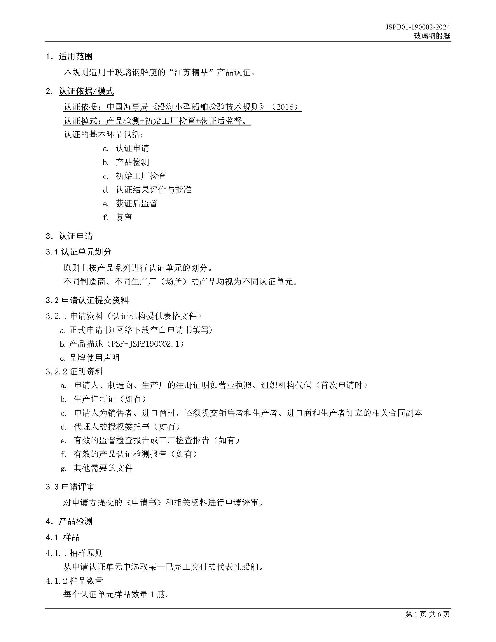 JSPB01-190002-2024玻璃钢船艇产品认证规则