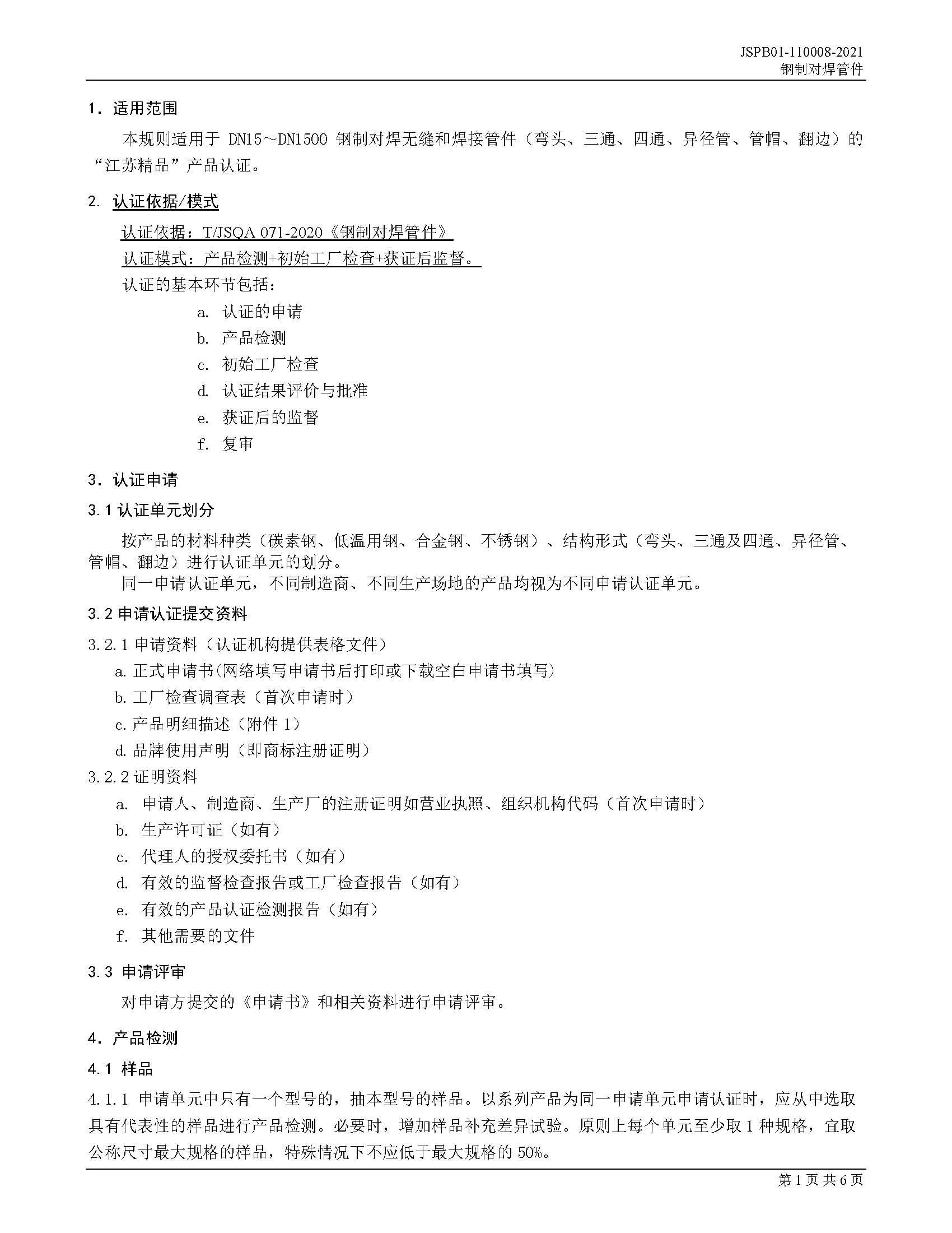 JSPB01-110008-2021钢制对焊管件产品认证规则