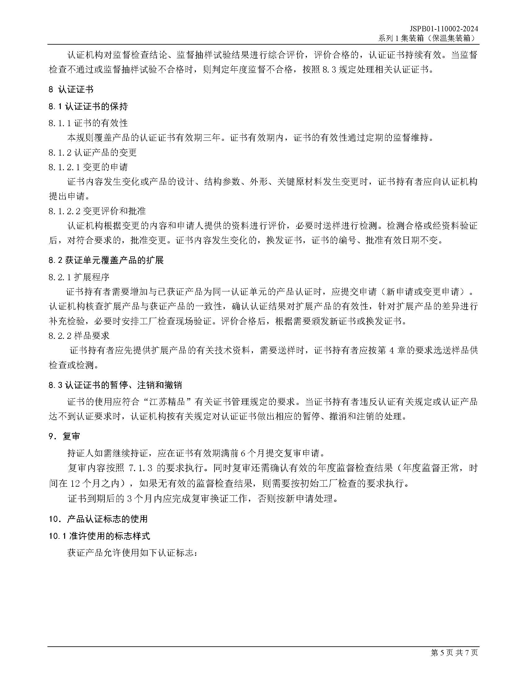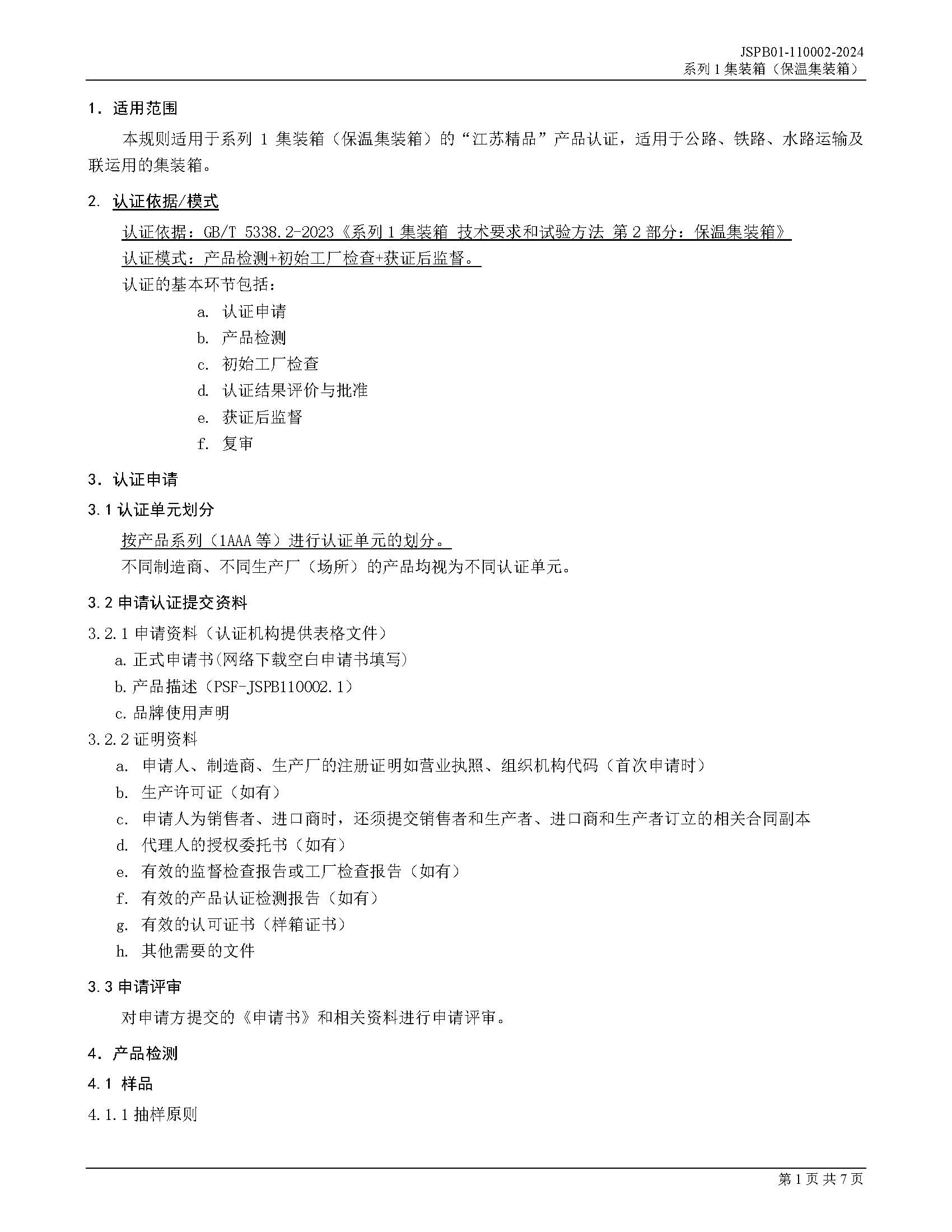 JSPB01-110002-2024系列1集装箱保温集装箱产品认证规则