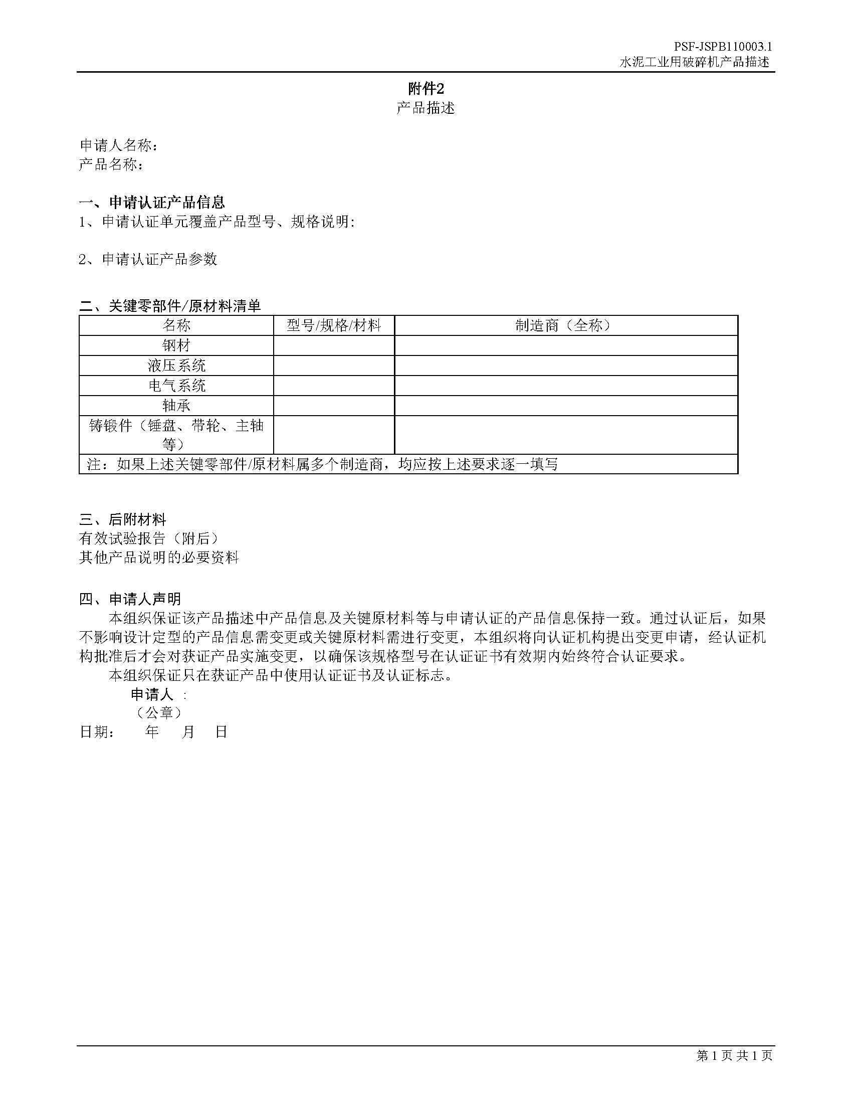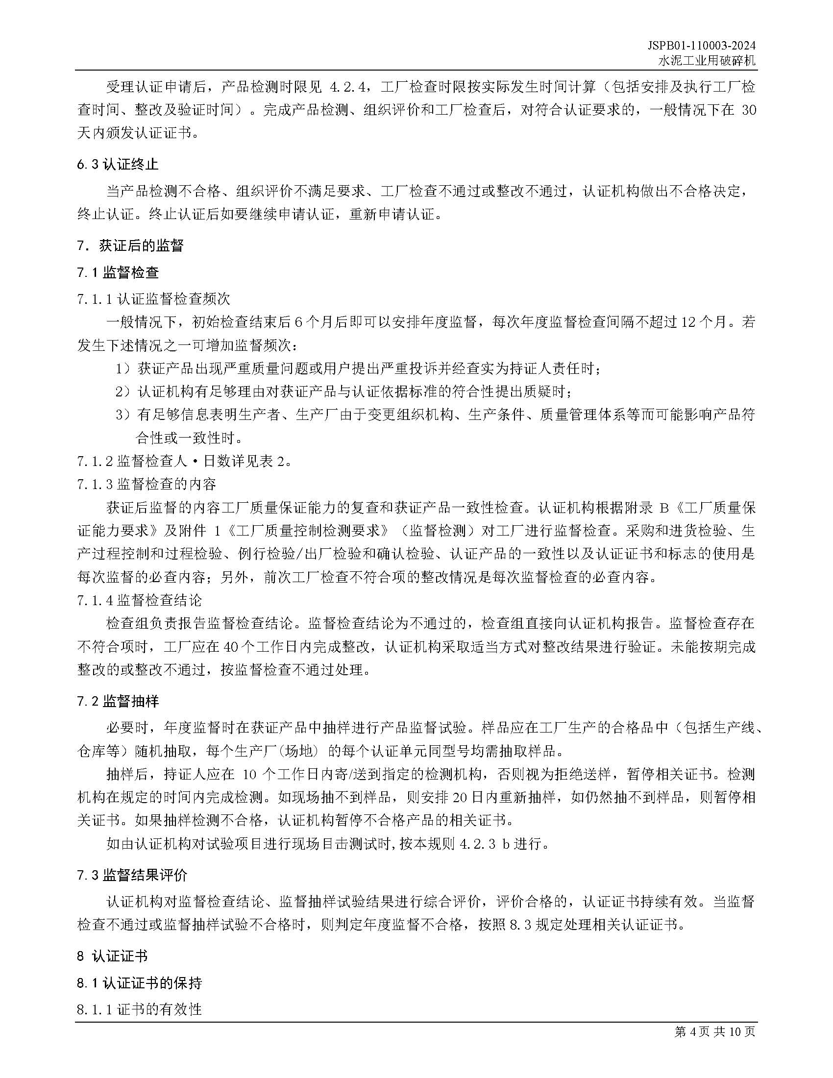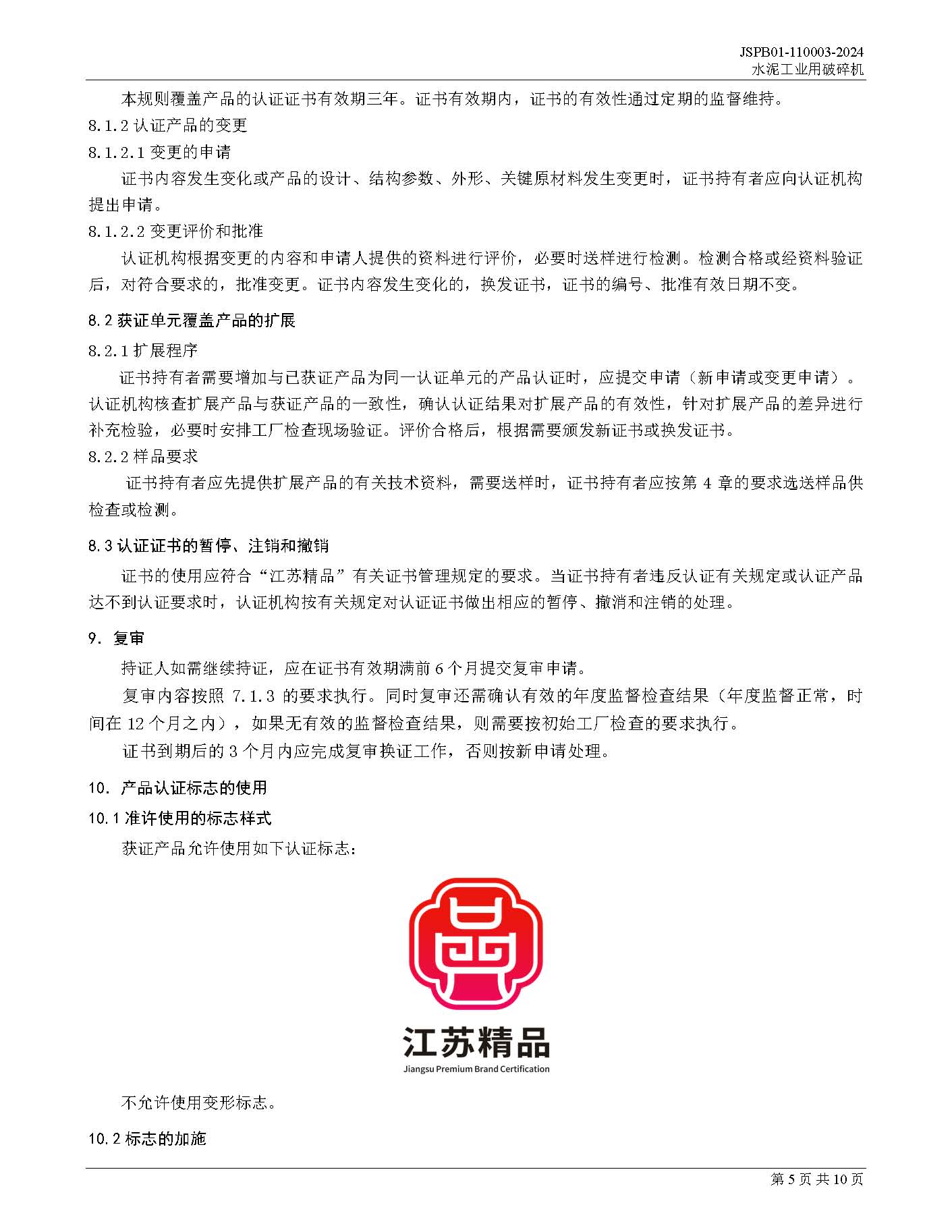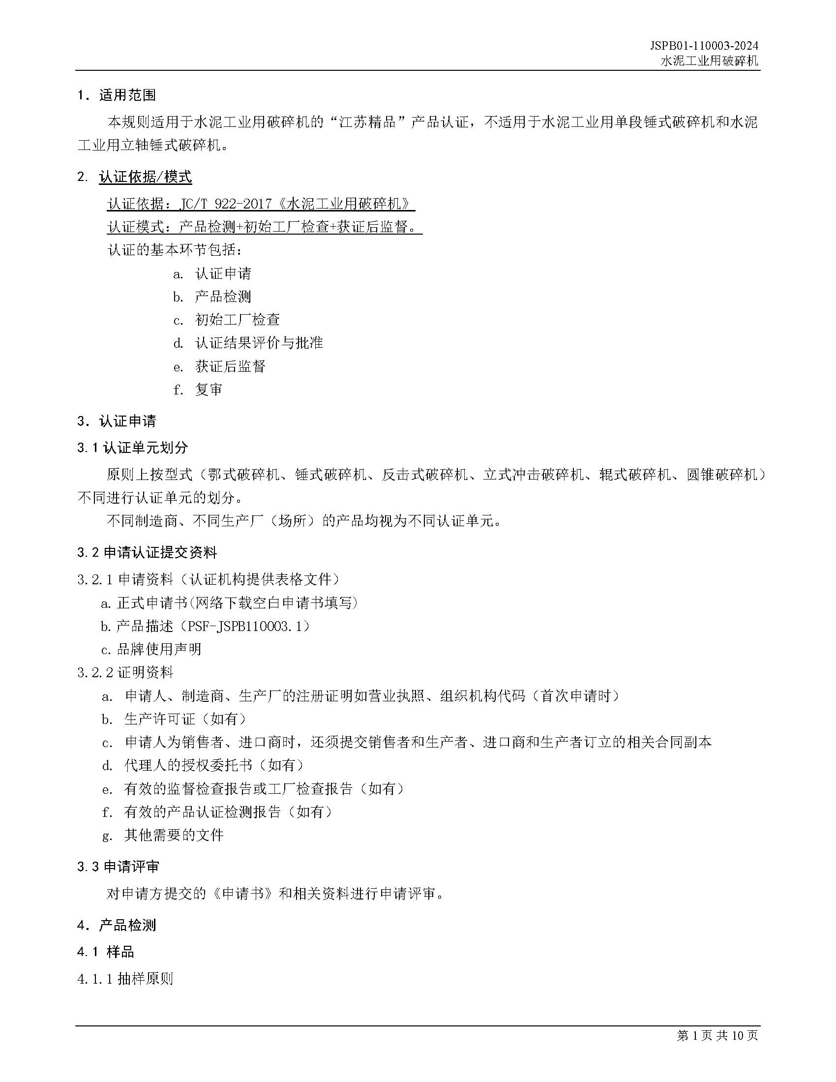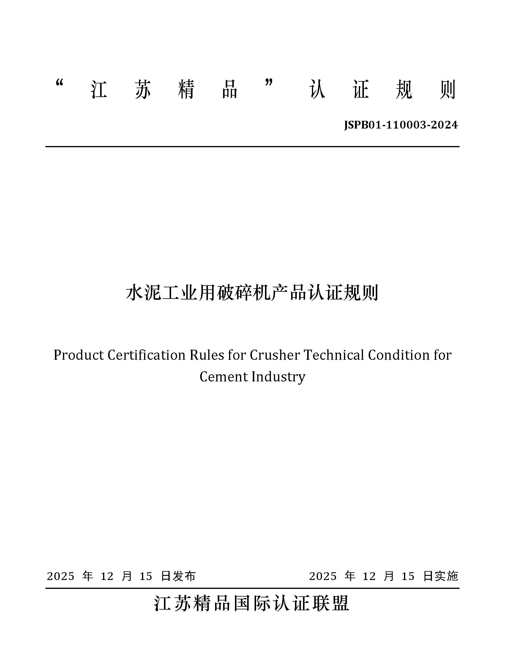 JSPB01-110003-2024水泥工业用破碎机产品认证规则