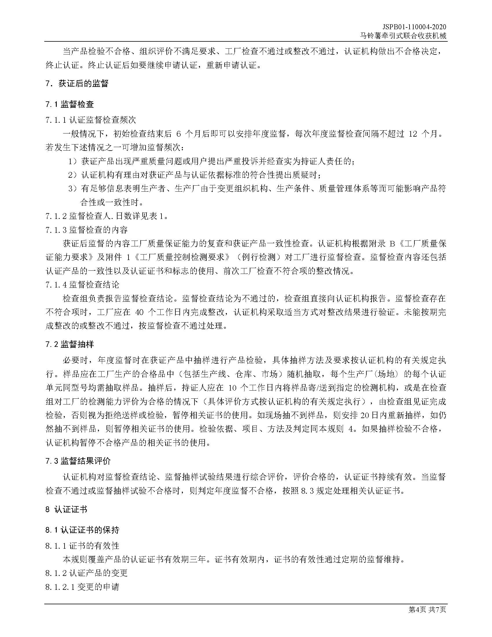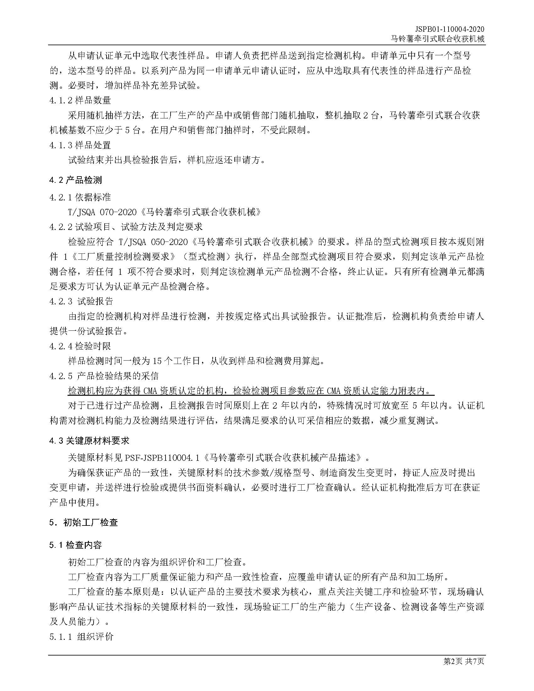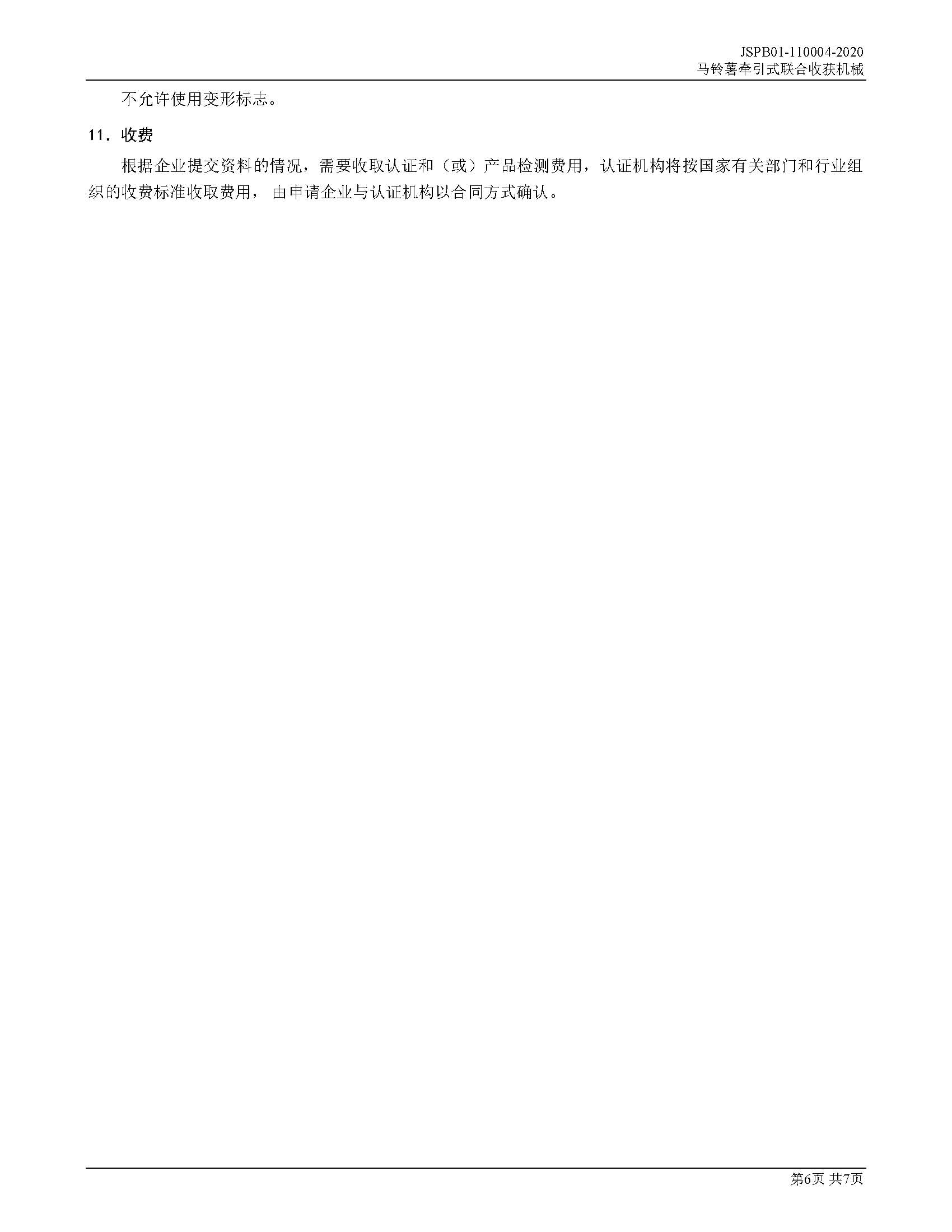 JSPB01-110004-2020马铃薯牵引式联合收获机械产品认证规则