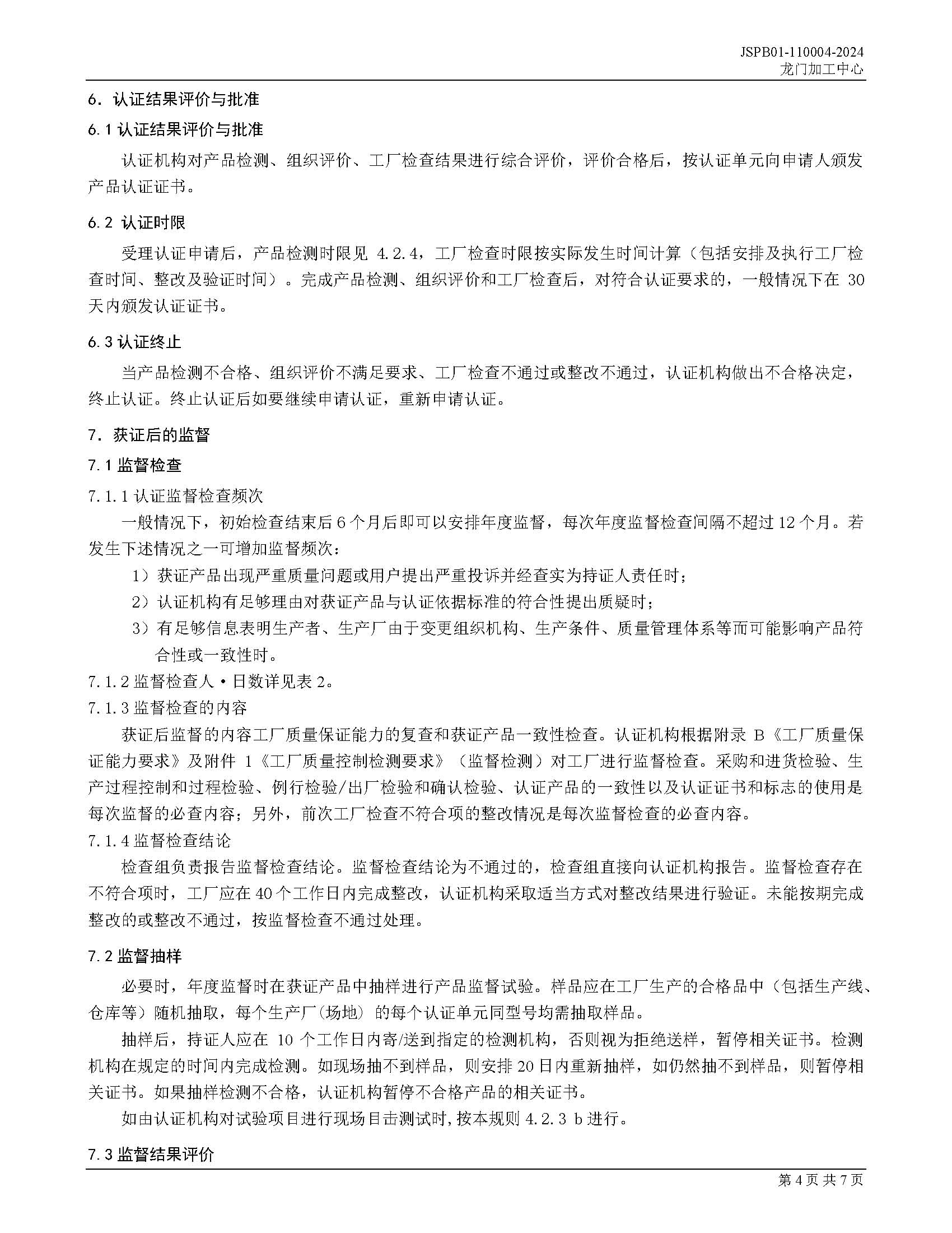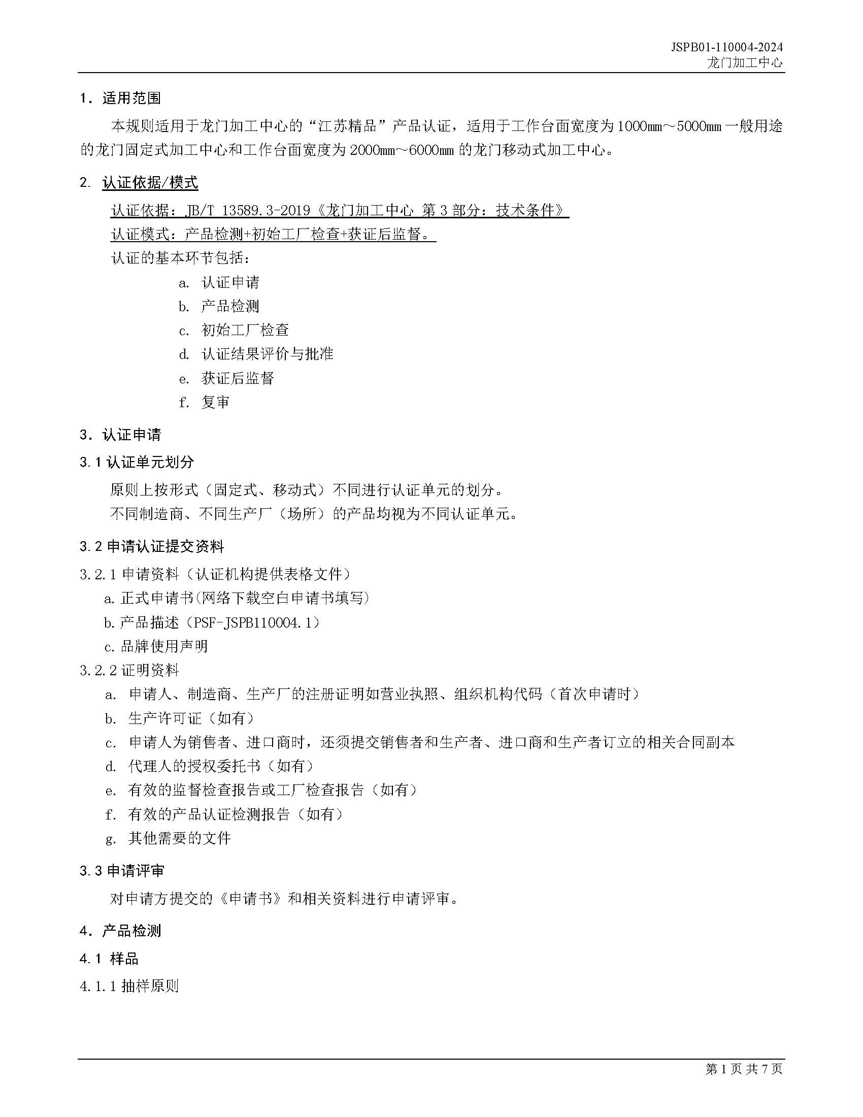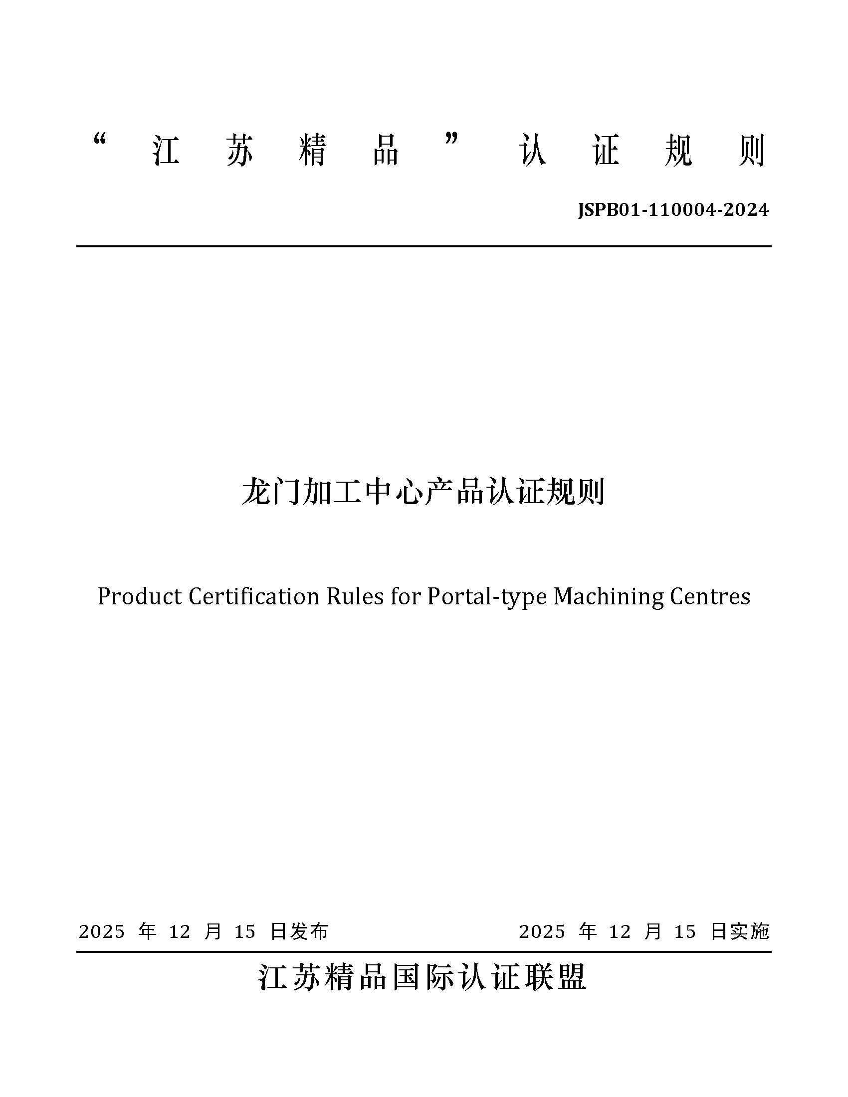 JSPB01-110004-2024龙门加工中心产品认证规则