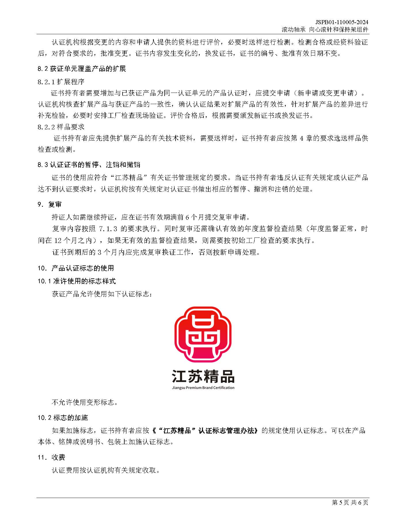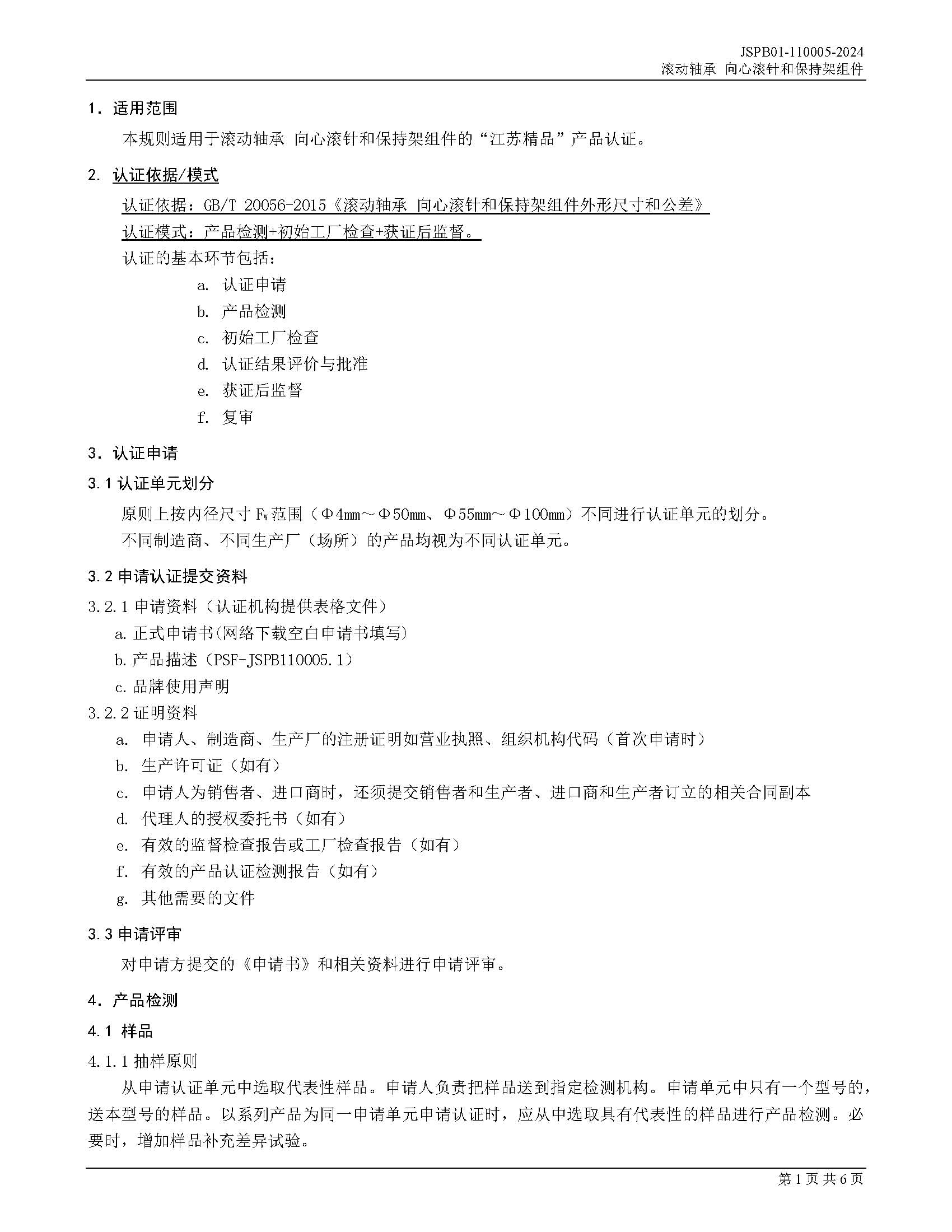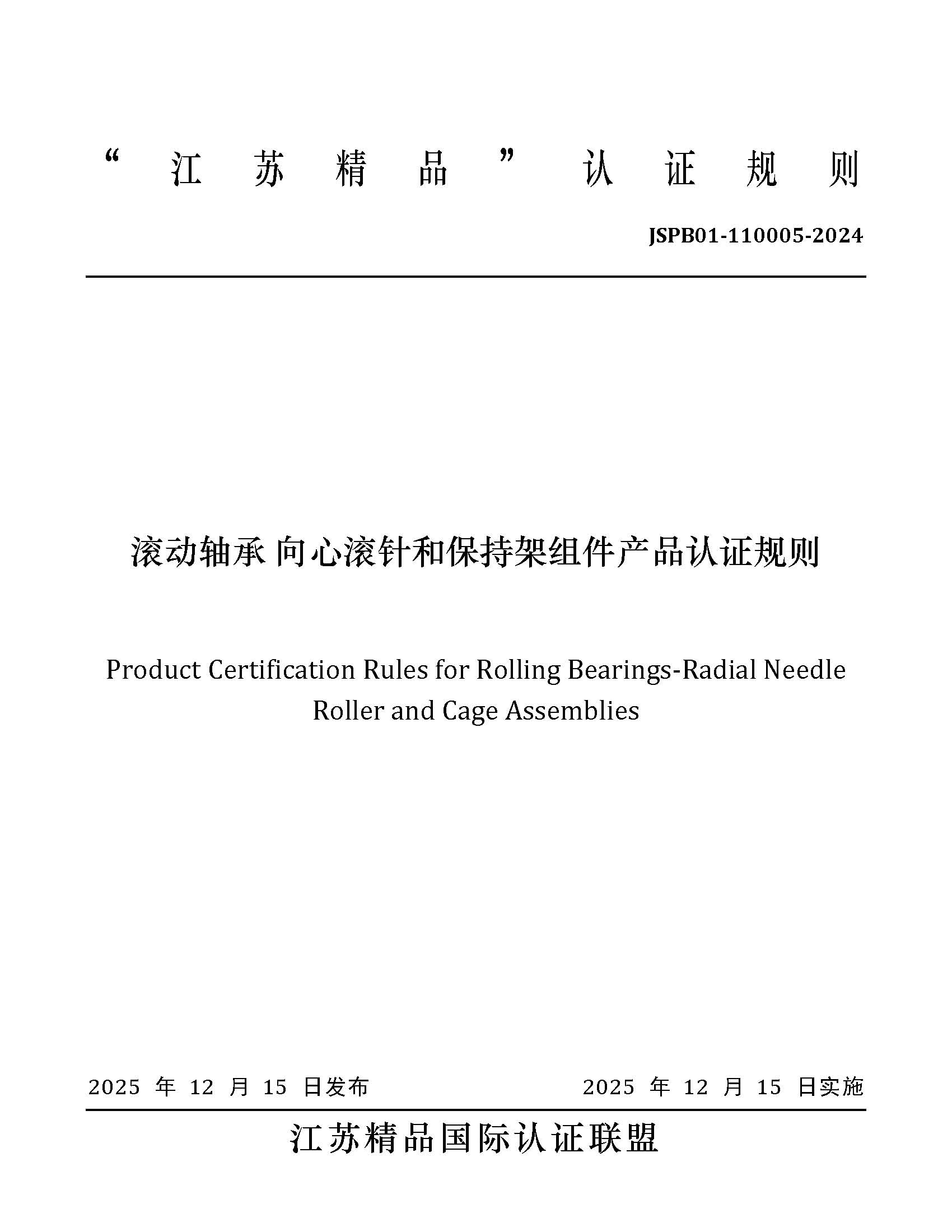 JSPB01-110005-2024滚动轴承向心滚针和保持架组件产品认证规则