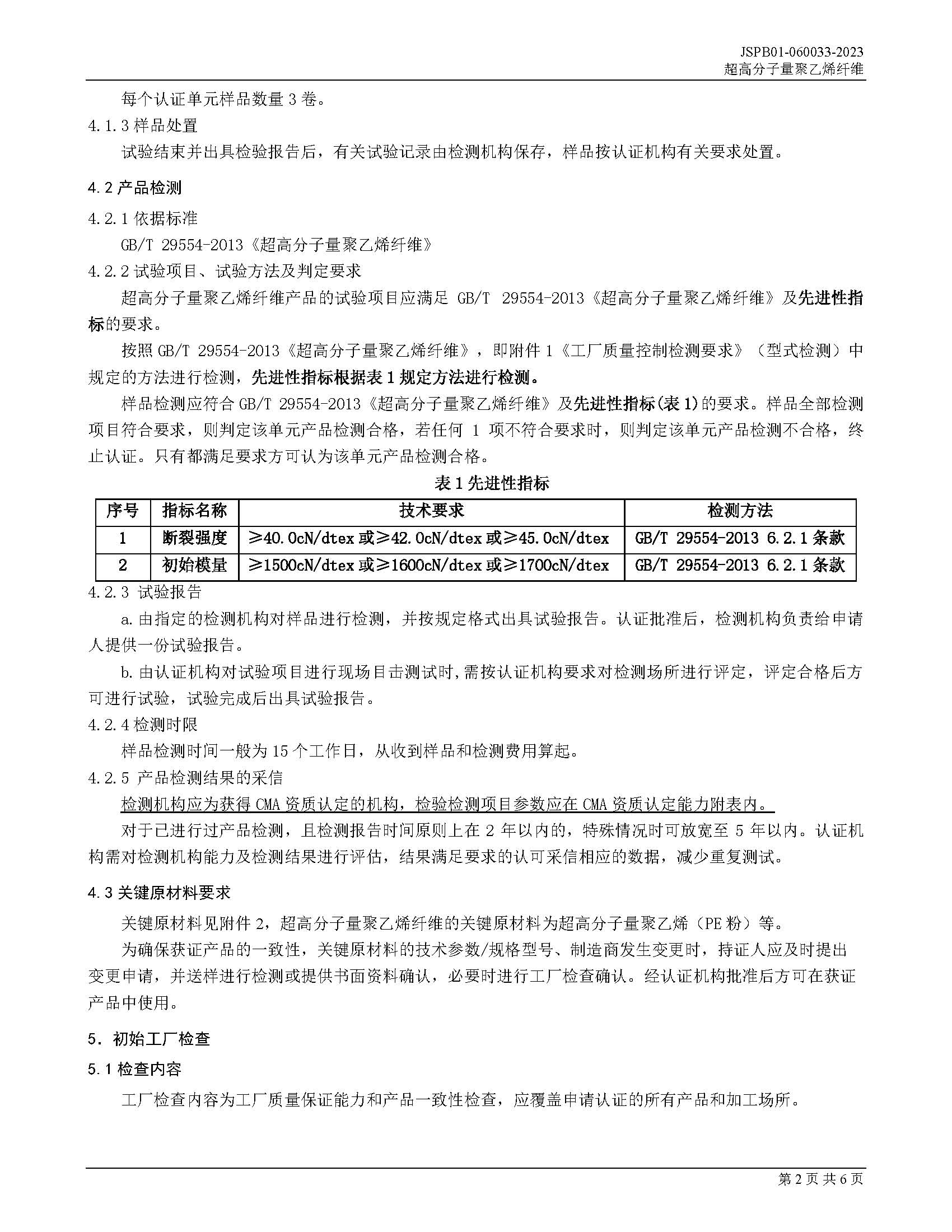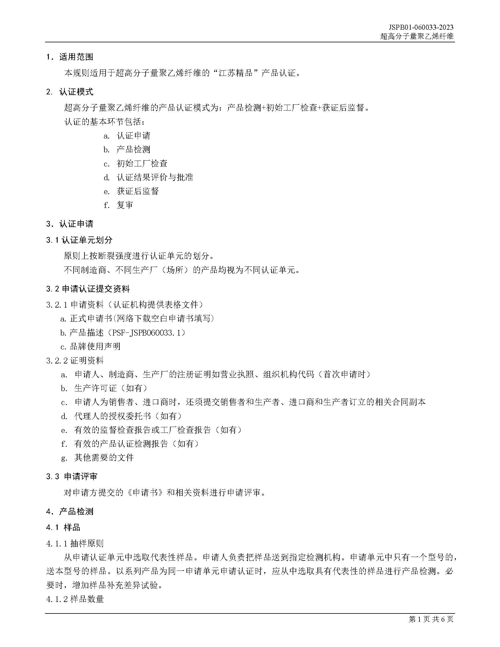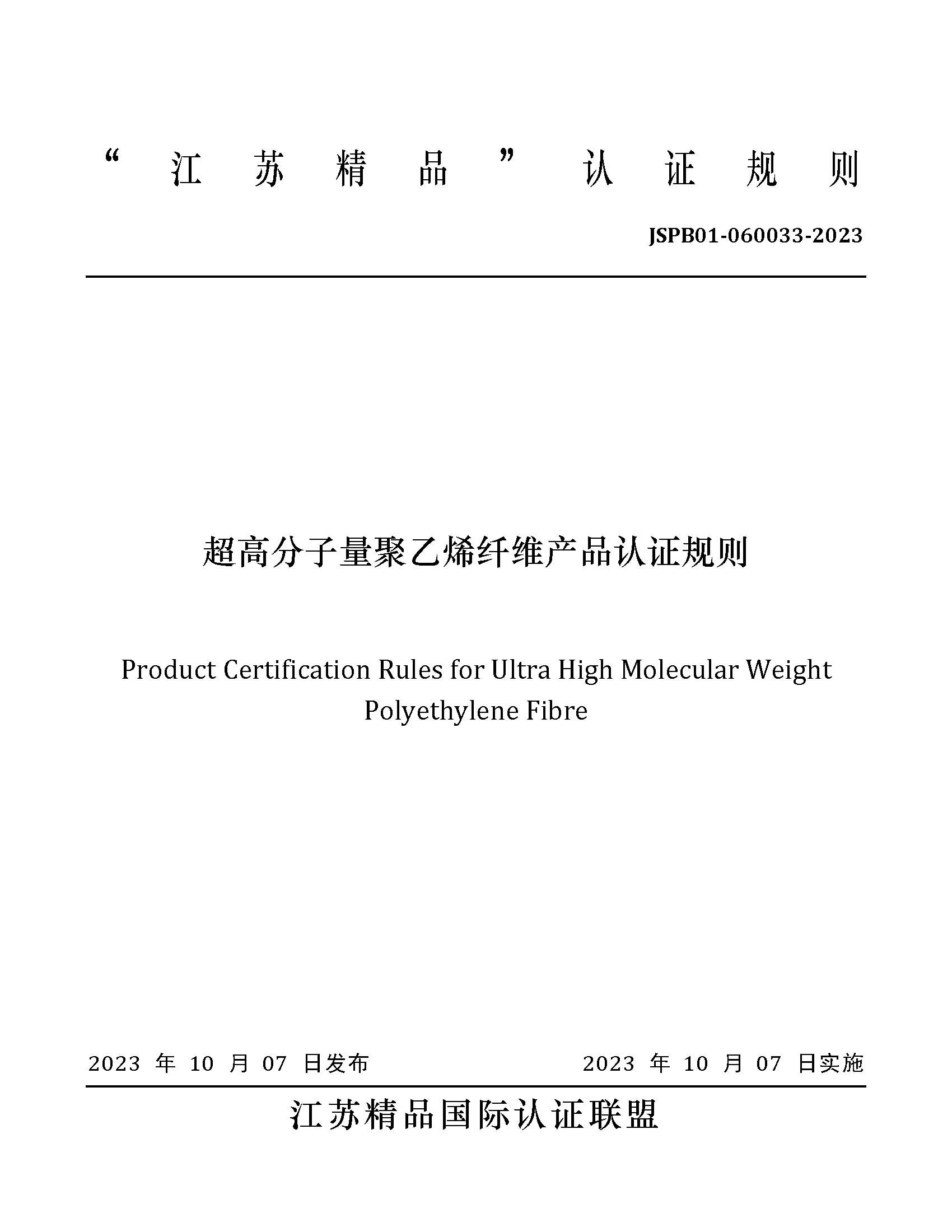 JSPB01-060033-2023超高分子量聚乙烯纤维产品认证规则