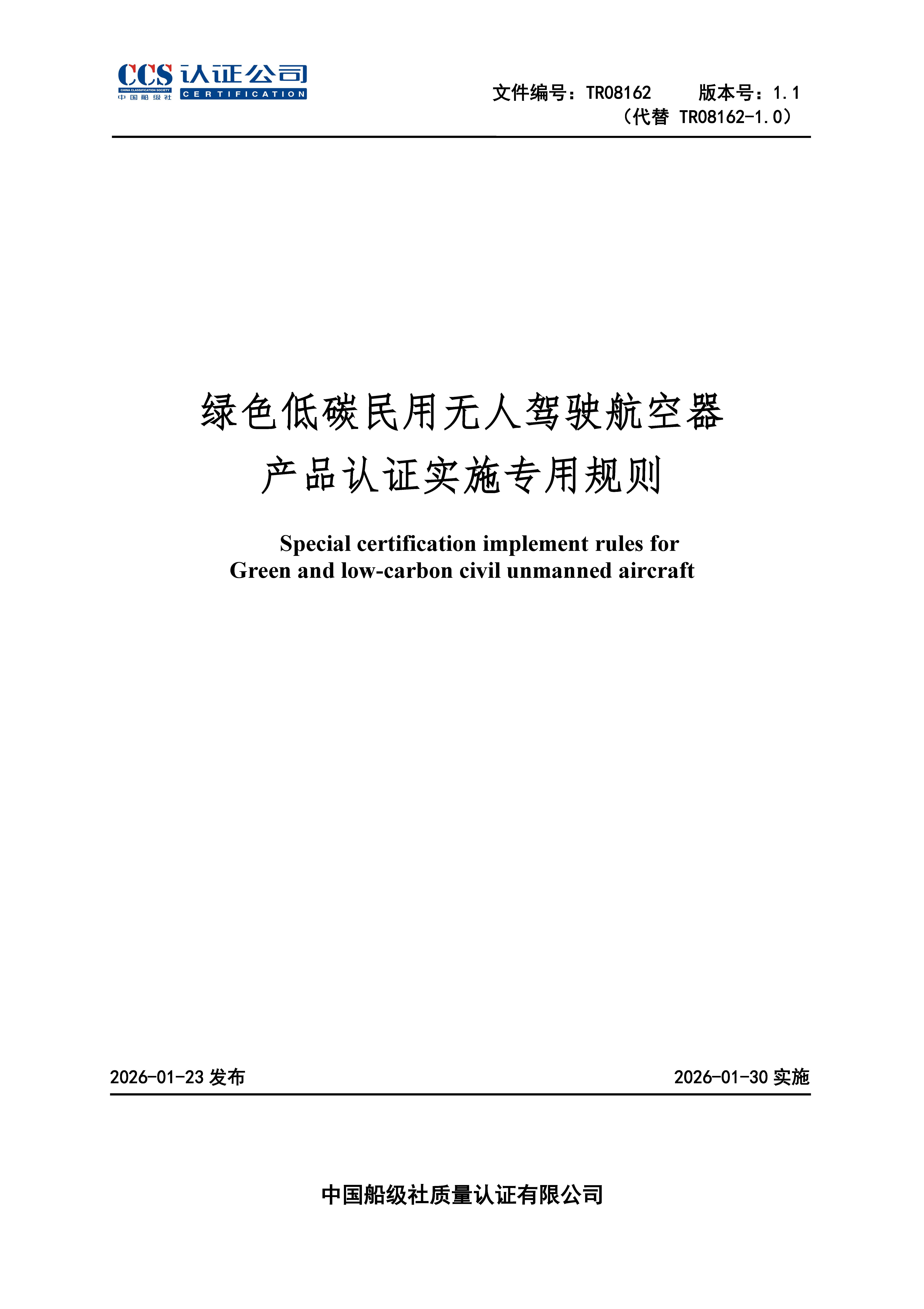 TR08162-1.1-绿色低碳民用无人驾驶航空器产品认证实施专用规则