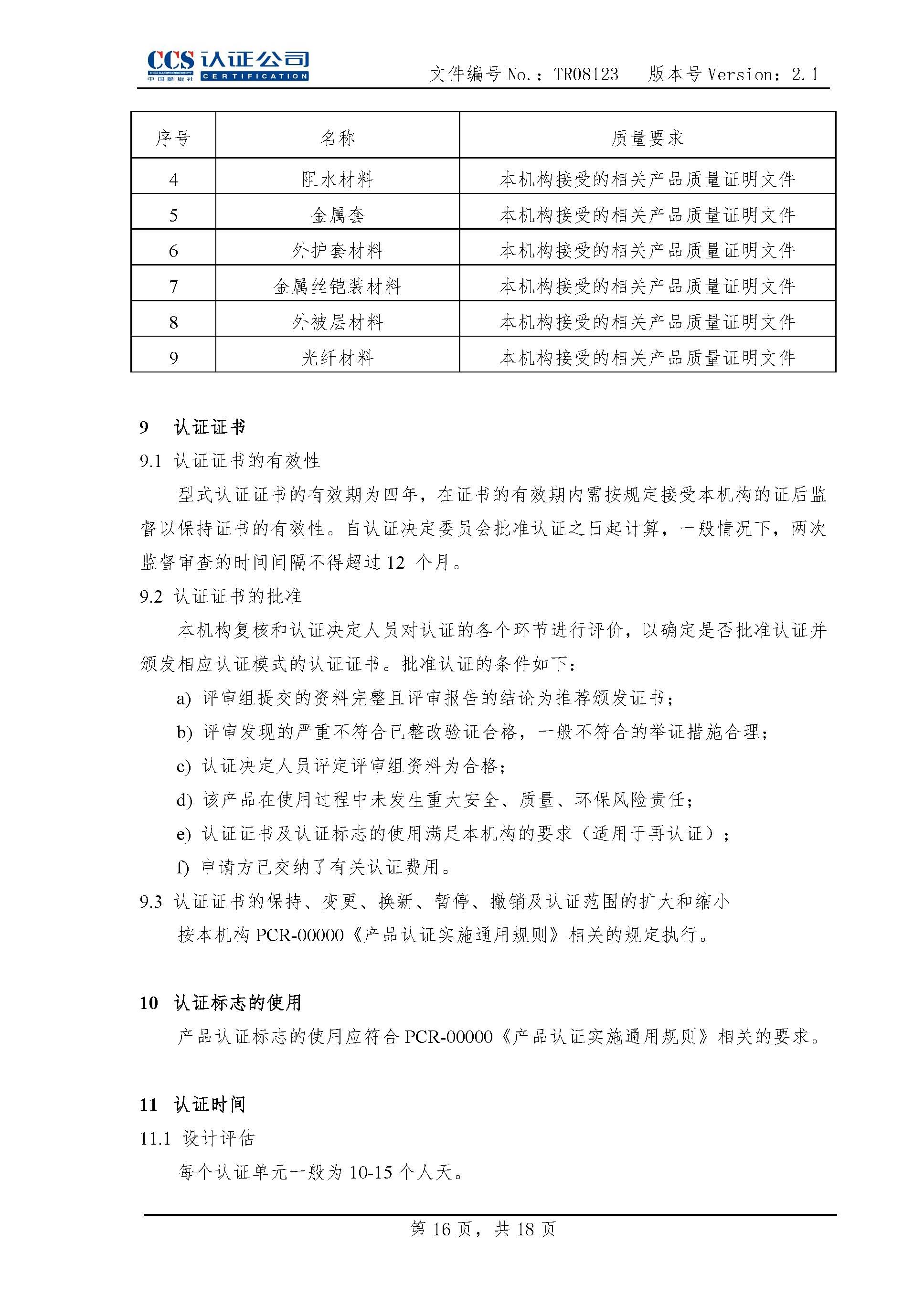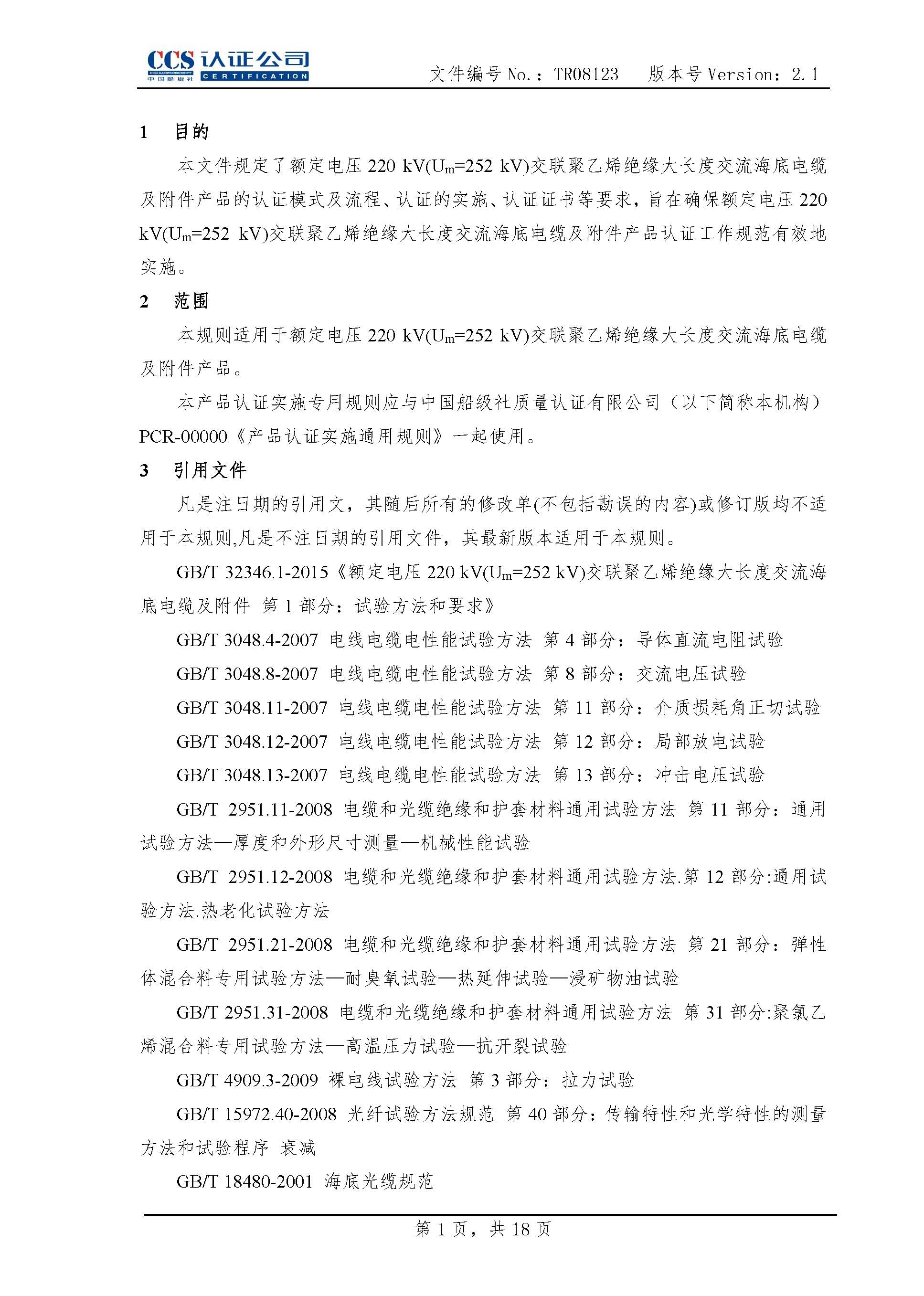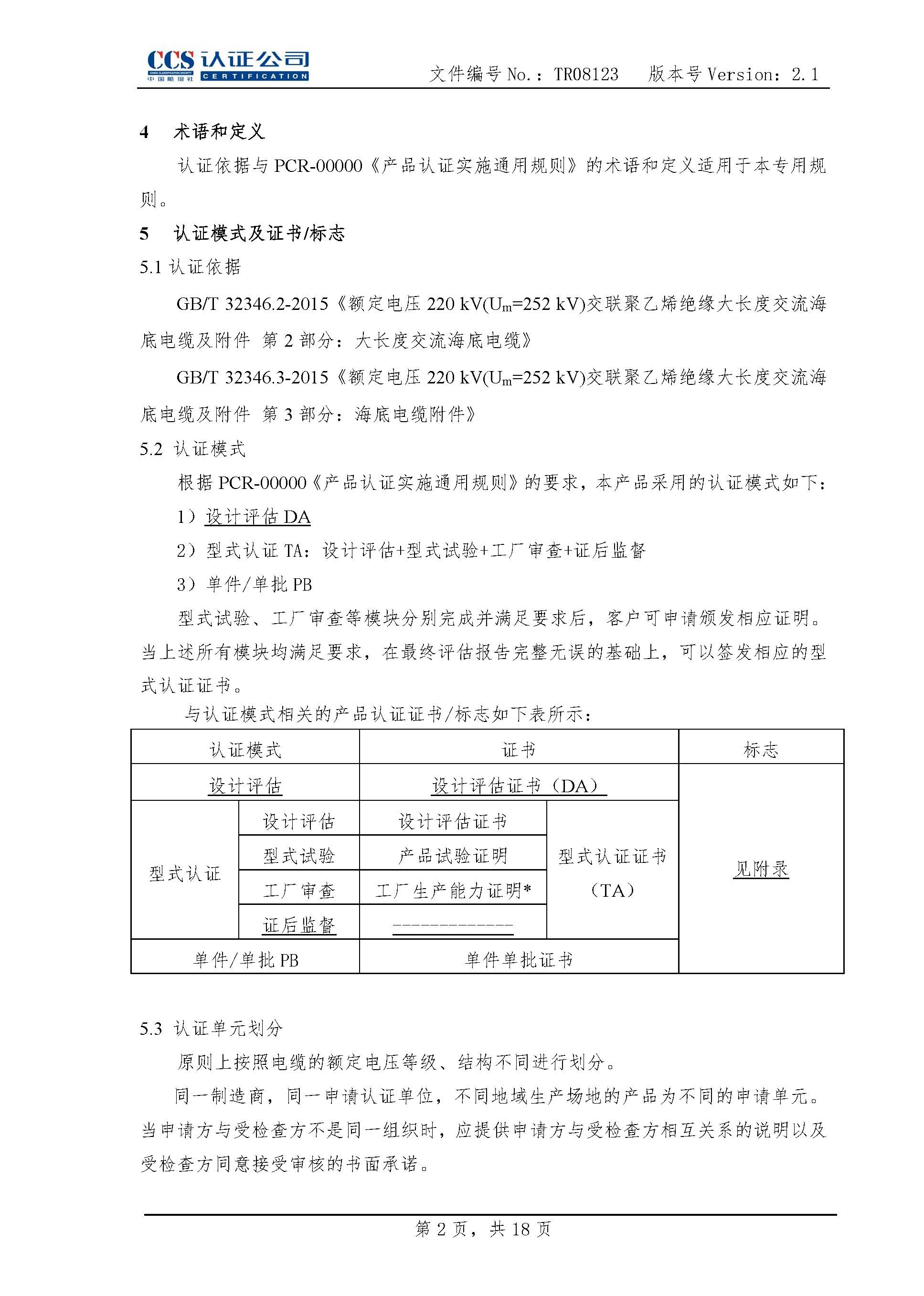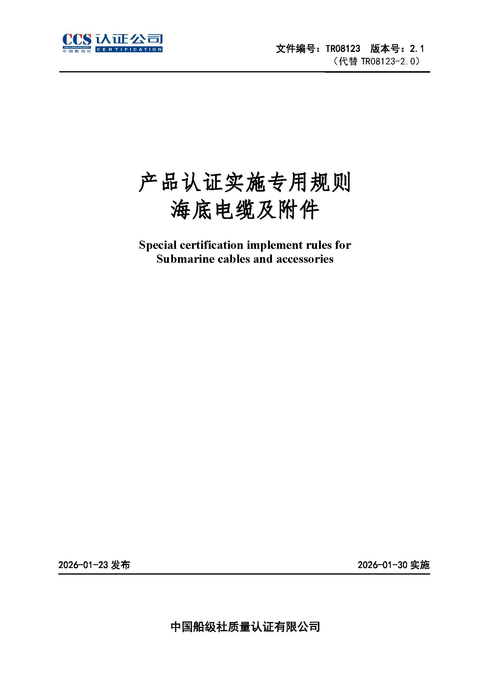 TR08123海底电缆及附件产品认证实施专用规则2.1