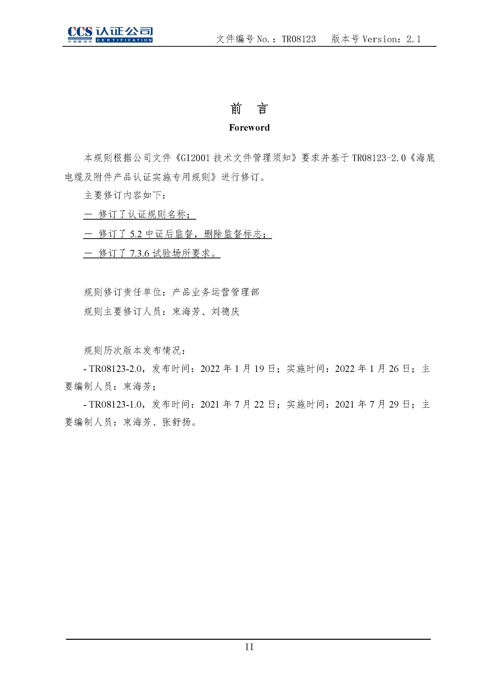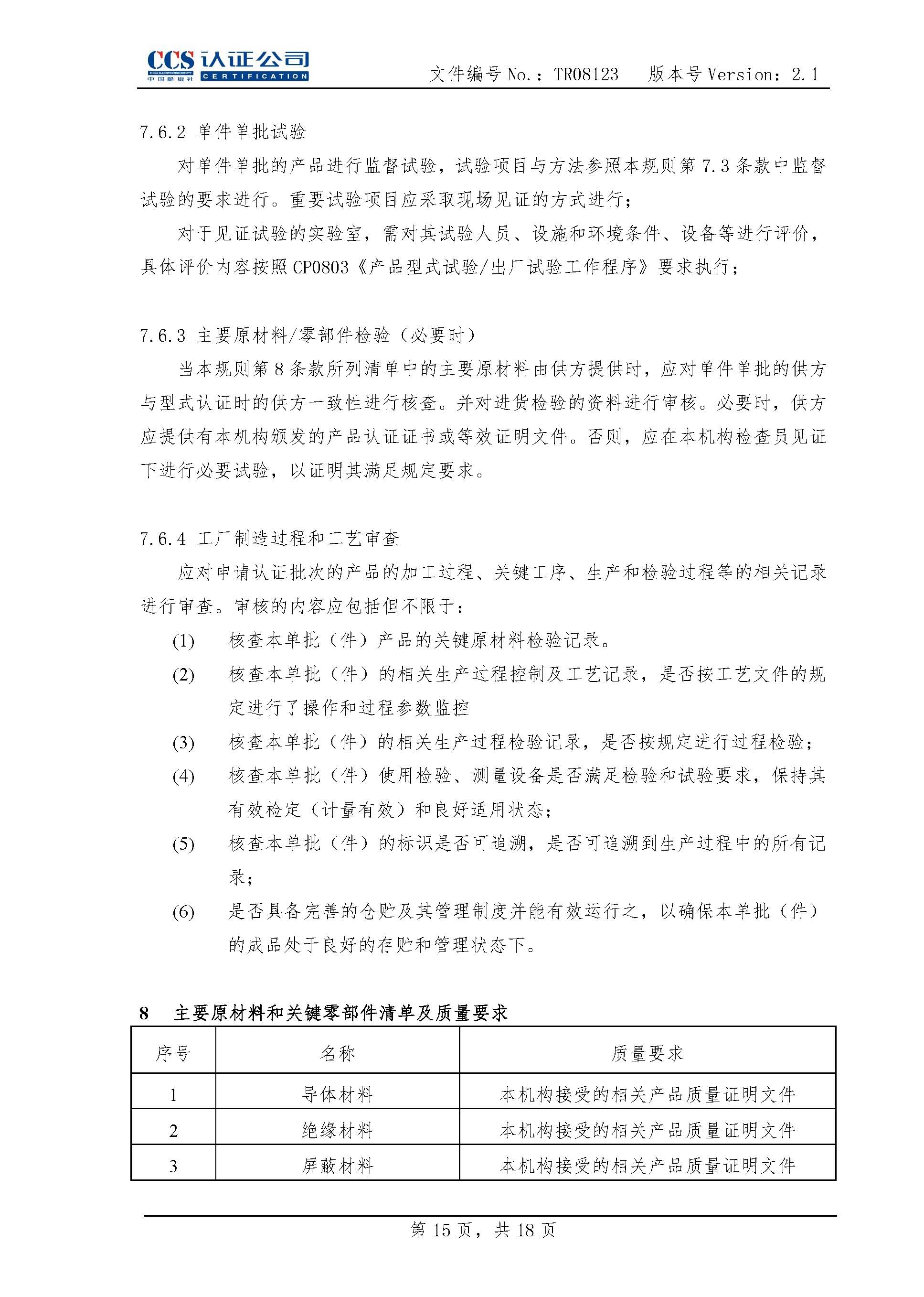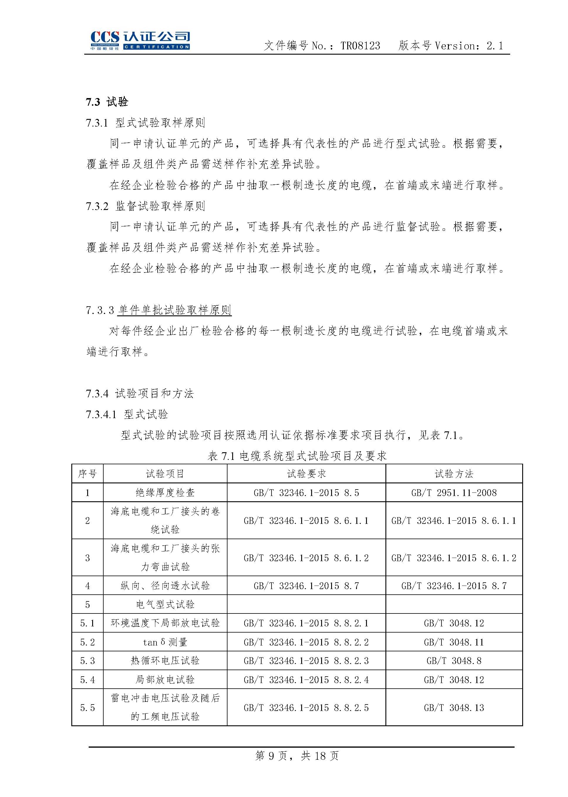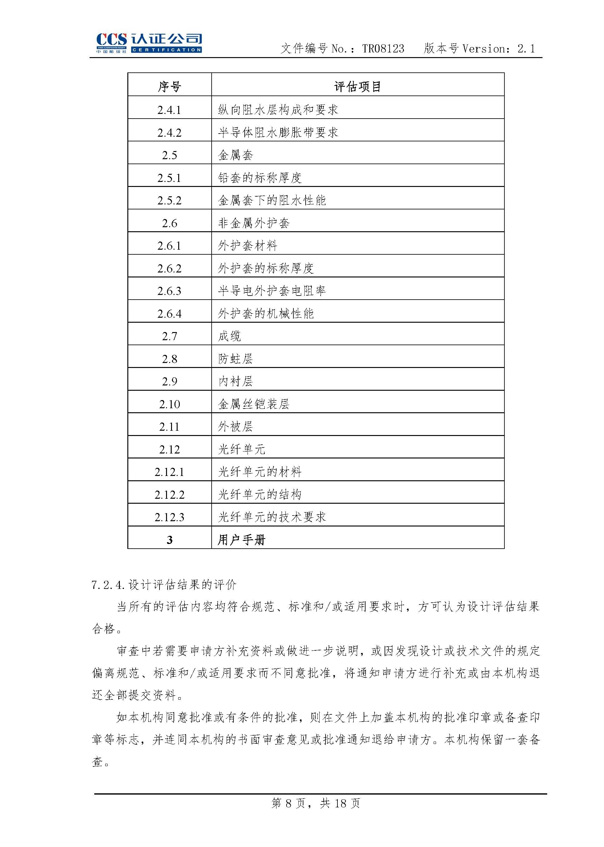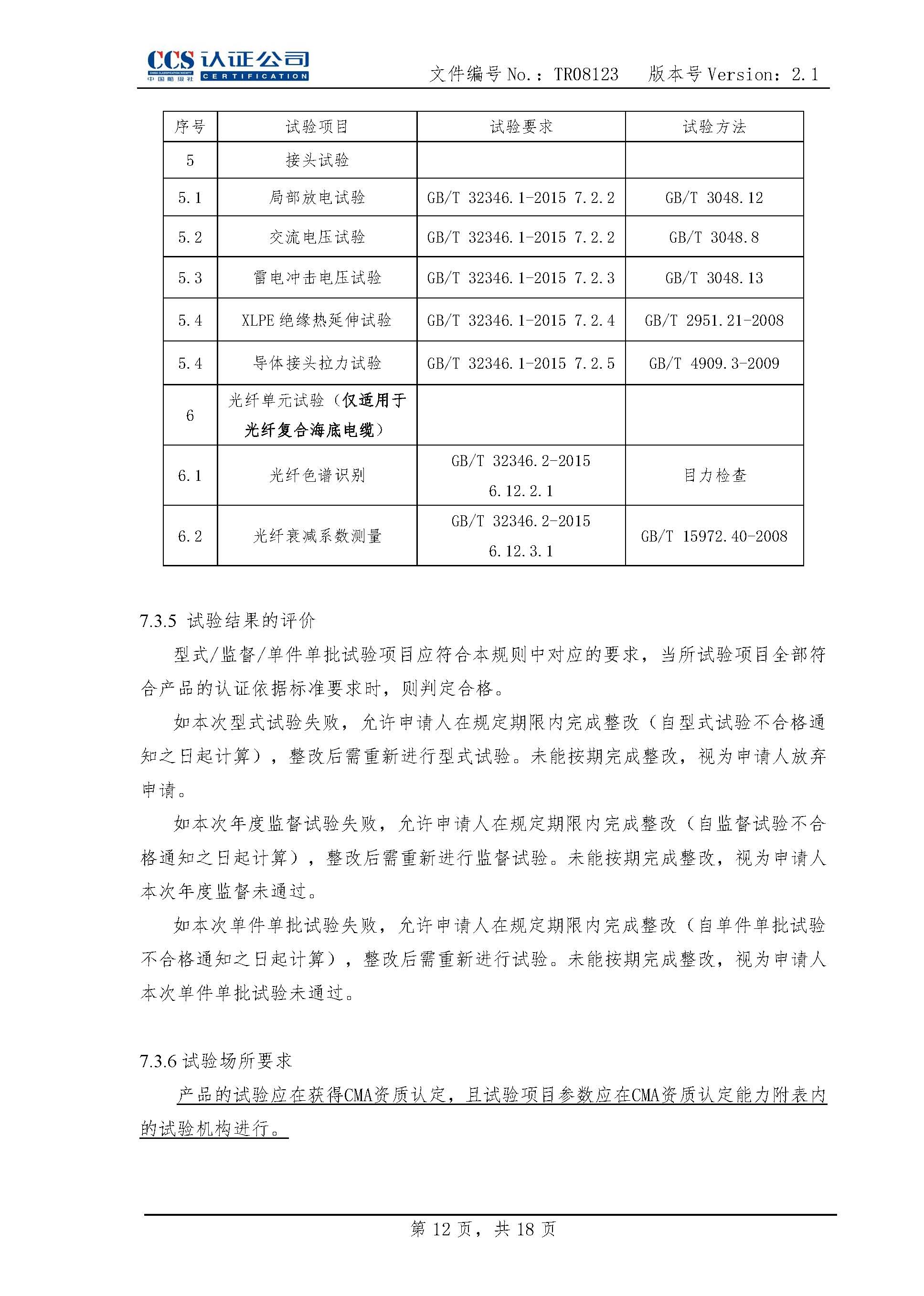 TR08123海底电缆及附件产品认证实施专用规则2.1