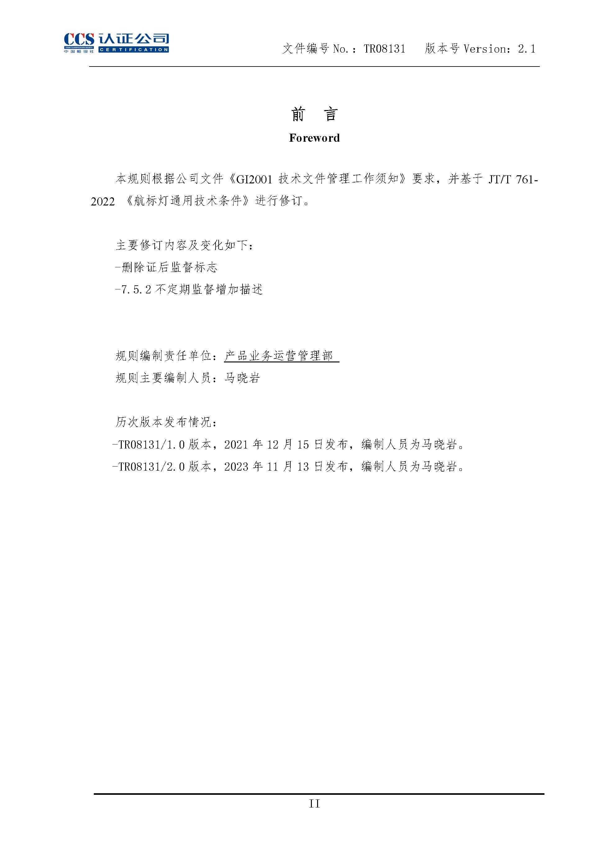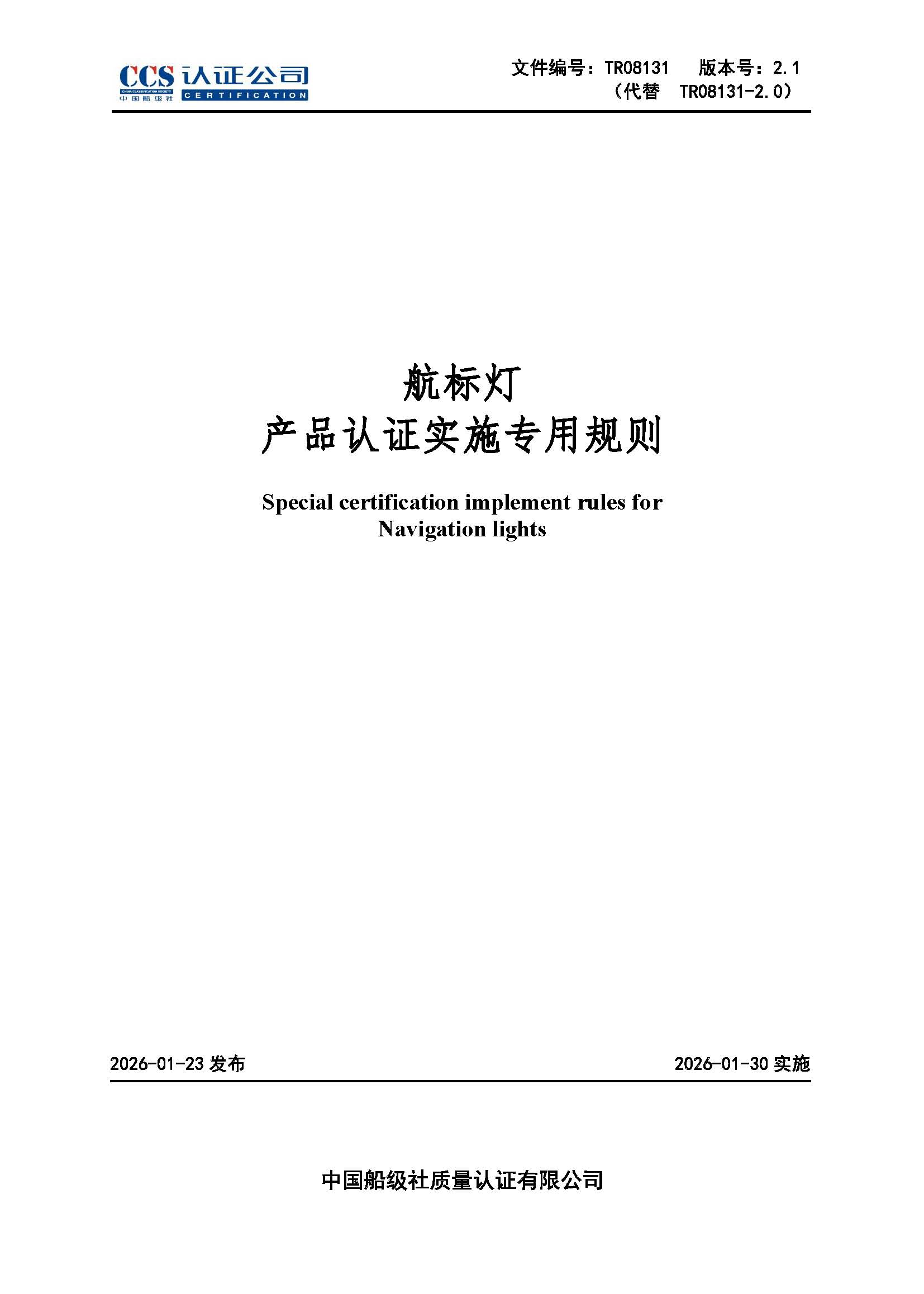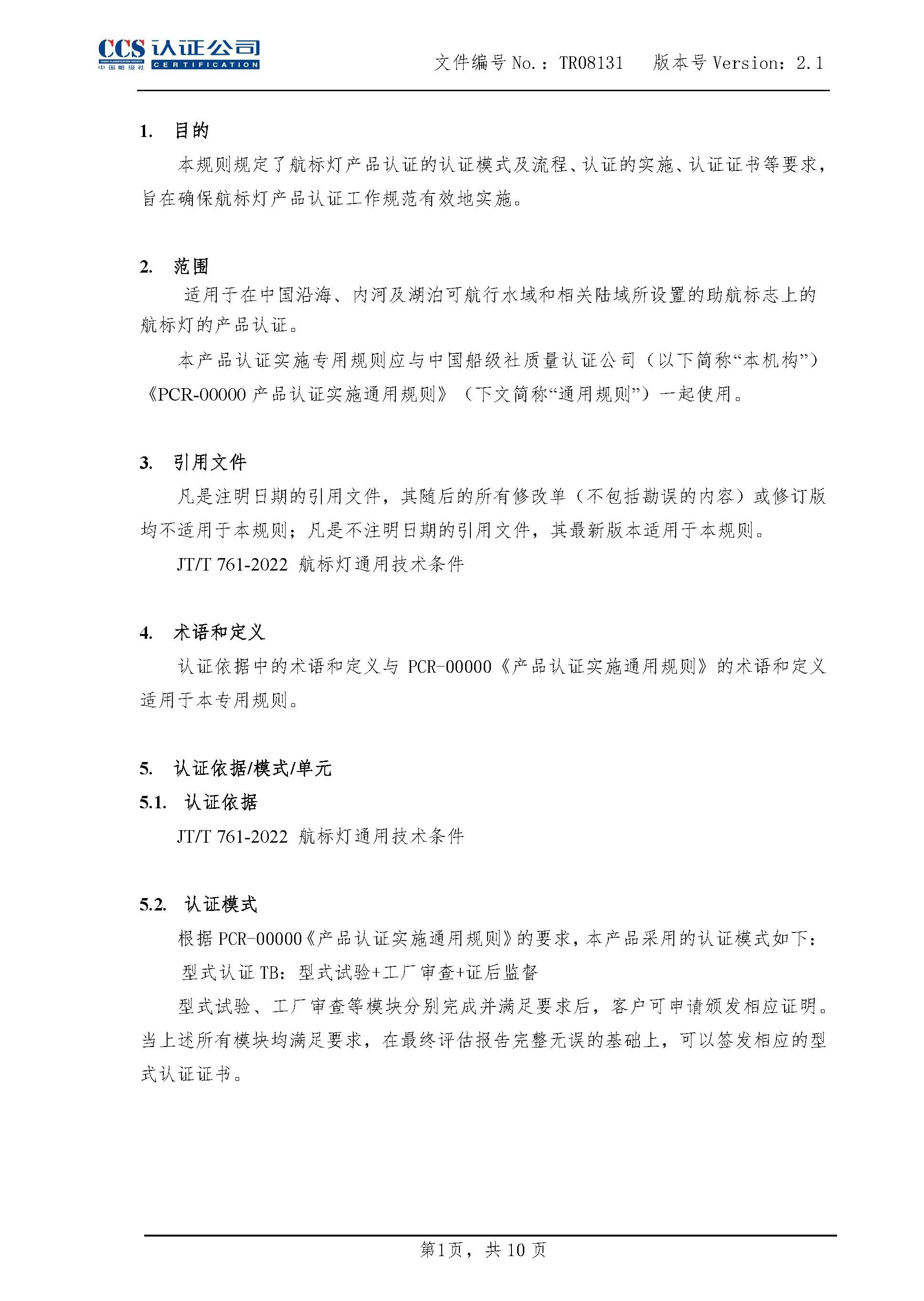 TR08131-2.1 航标灯产品认证实施专用规则