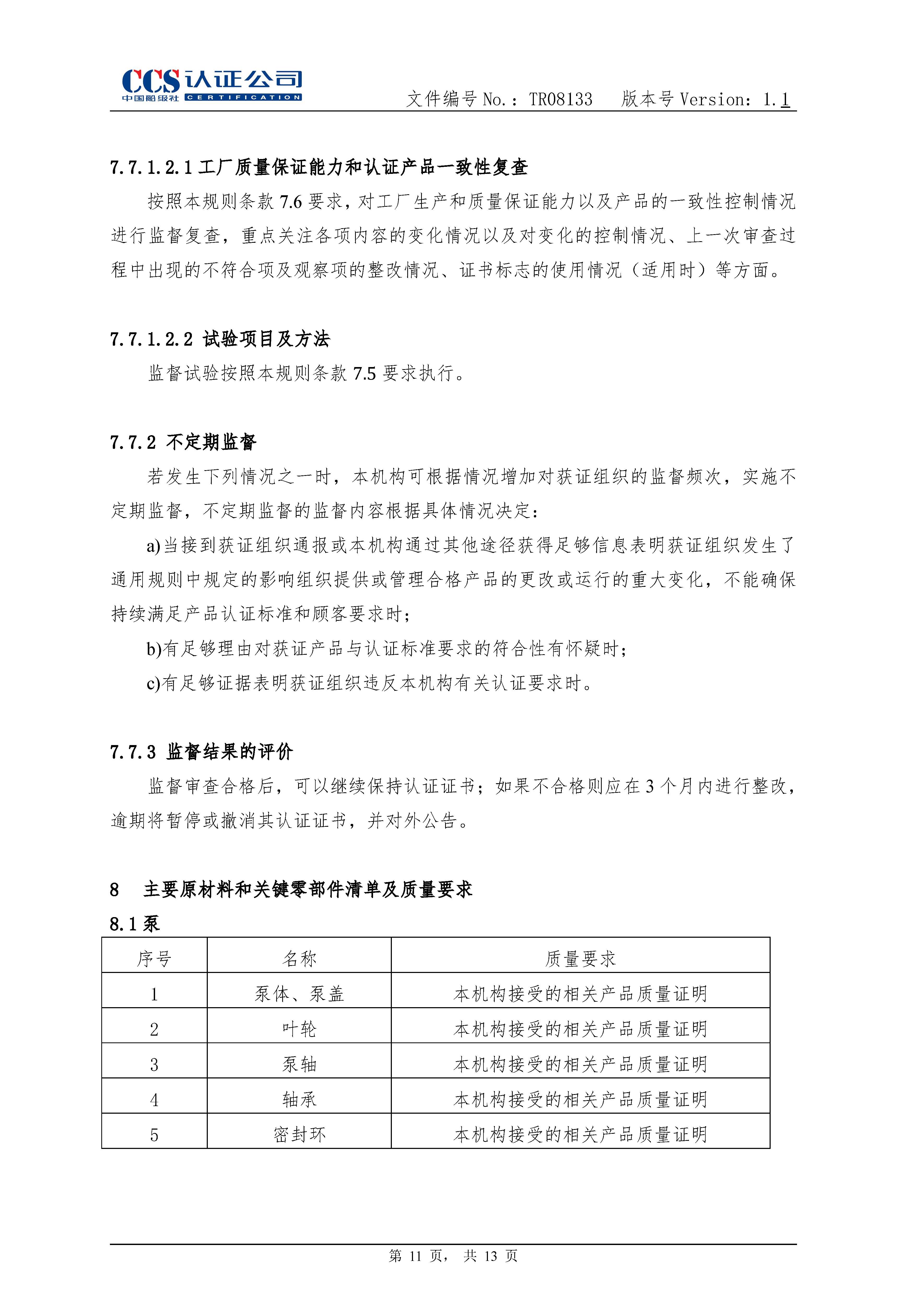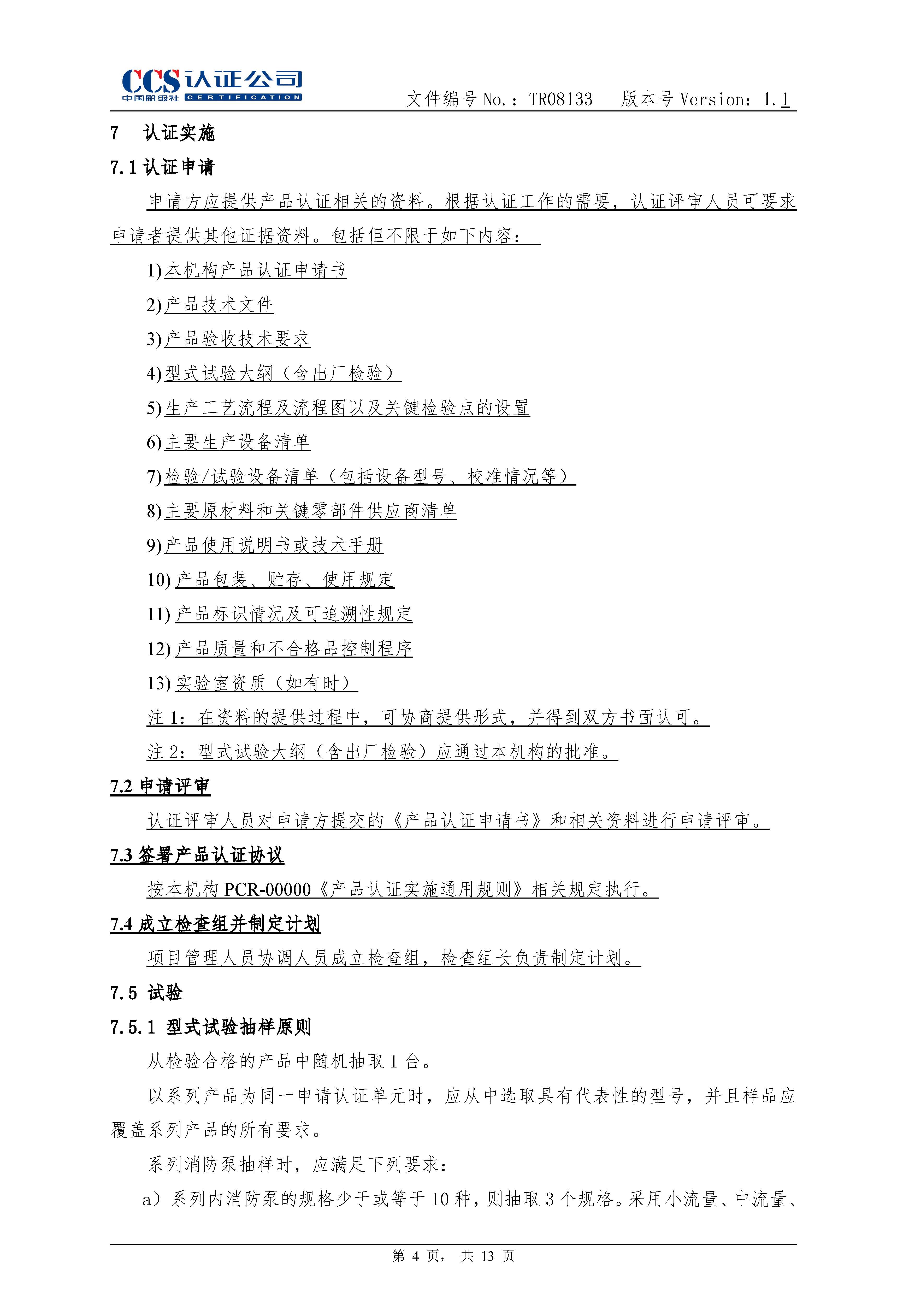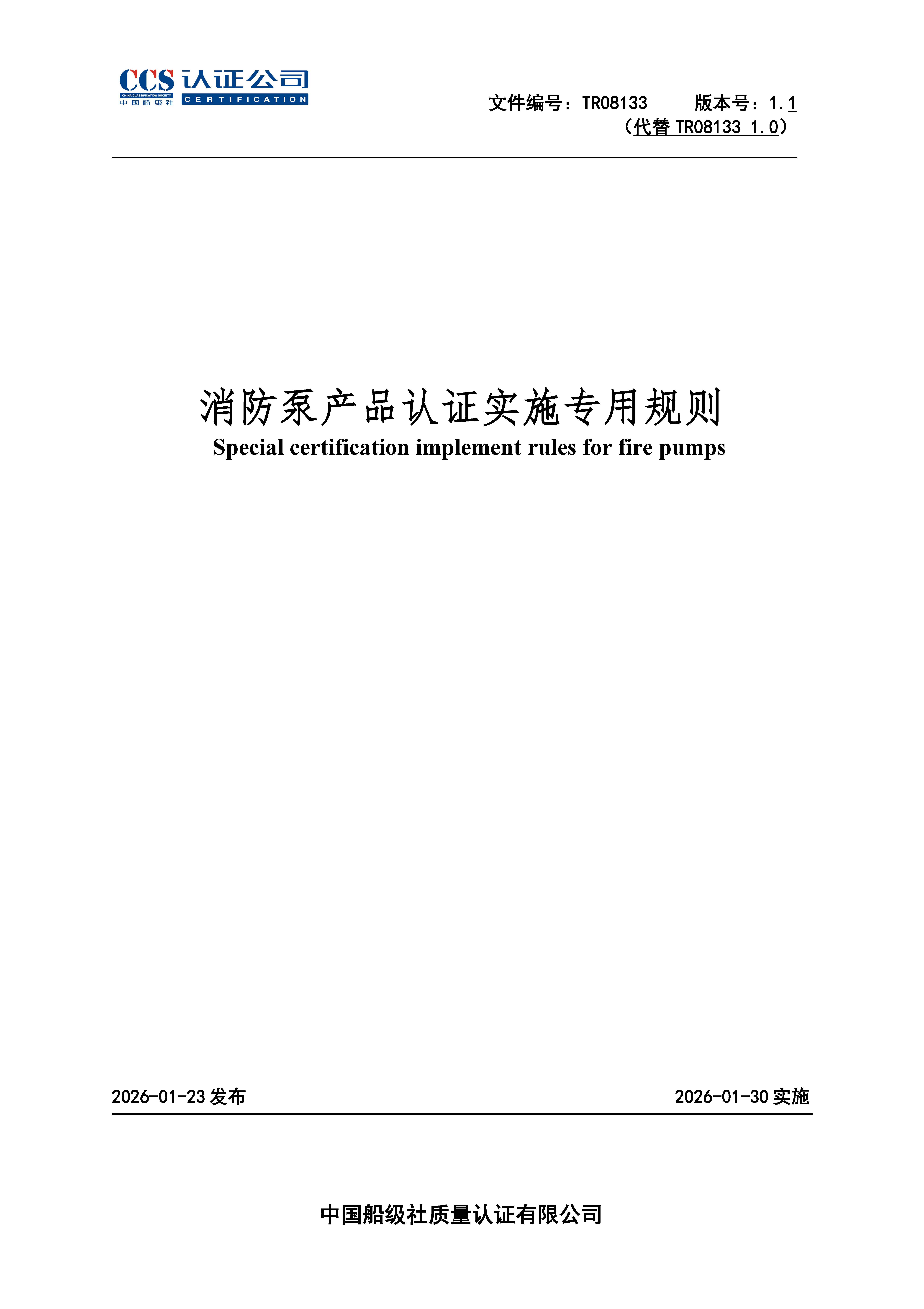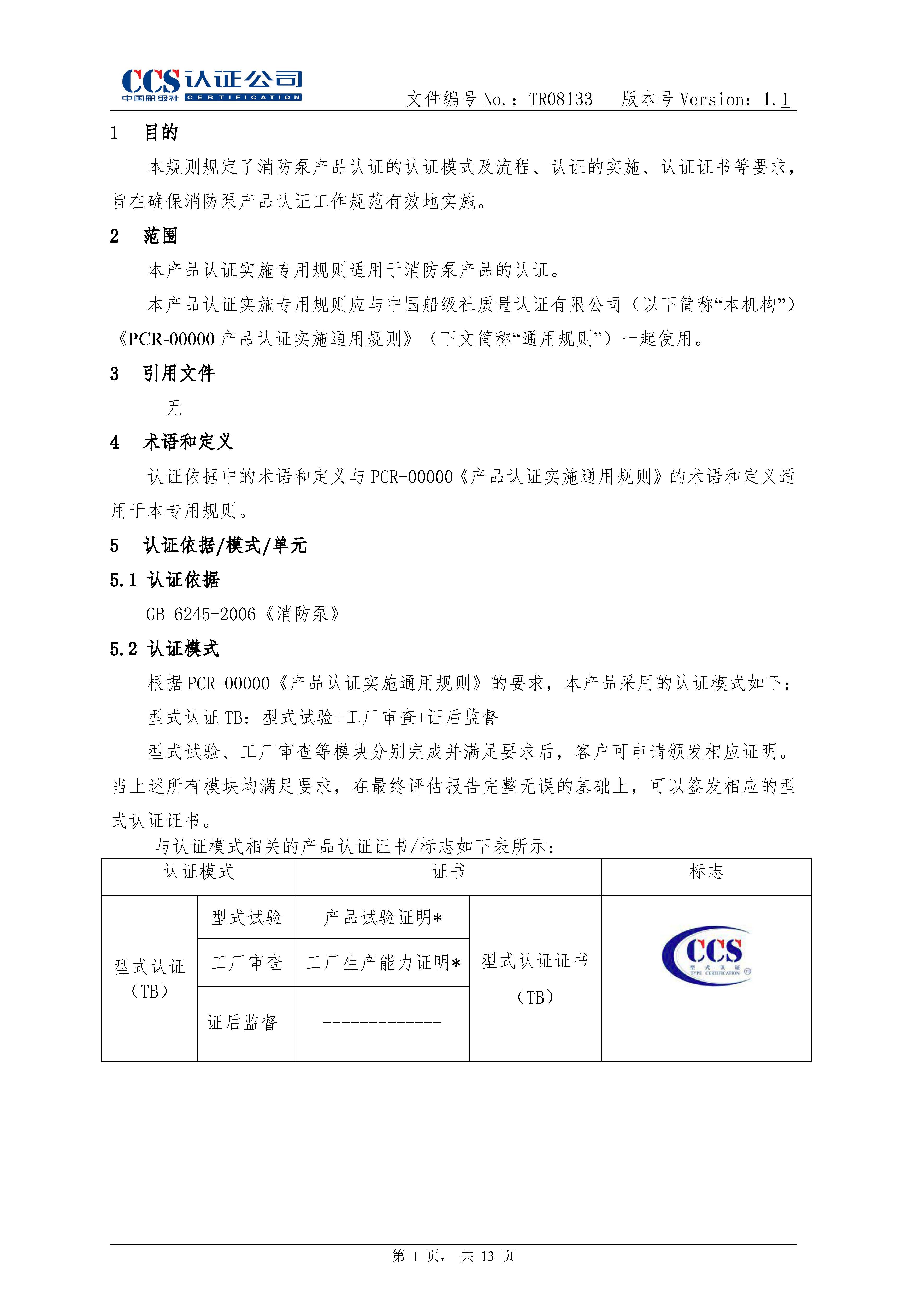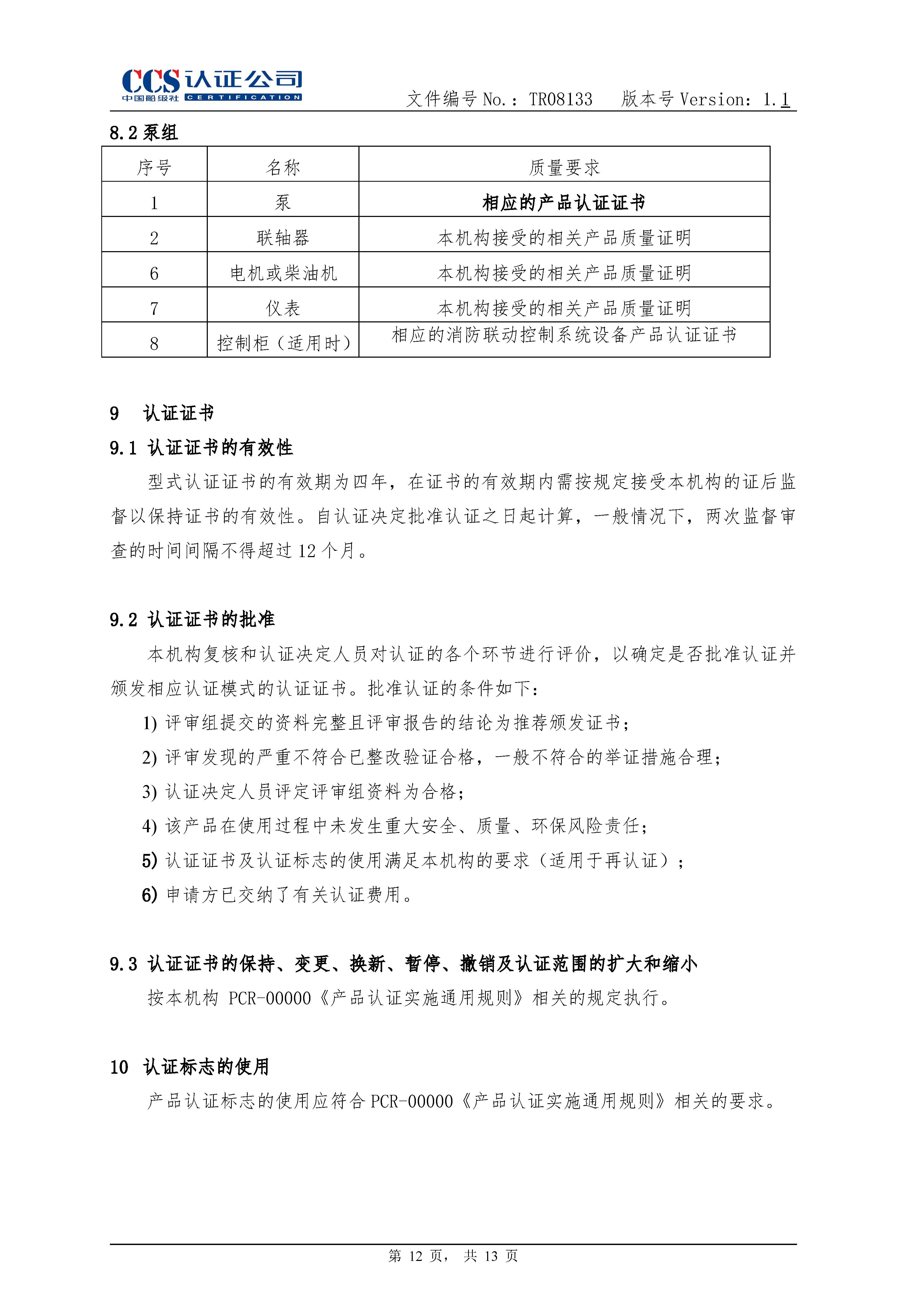 TR08133-1.1消防泵产品认证实施专用规则