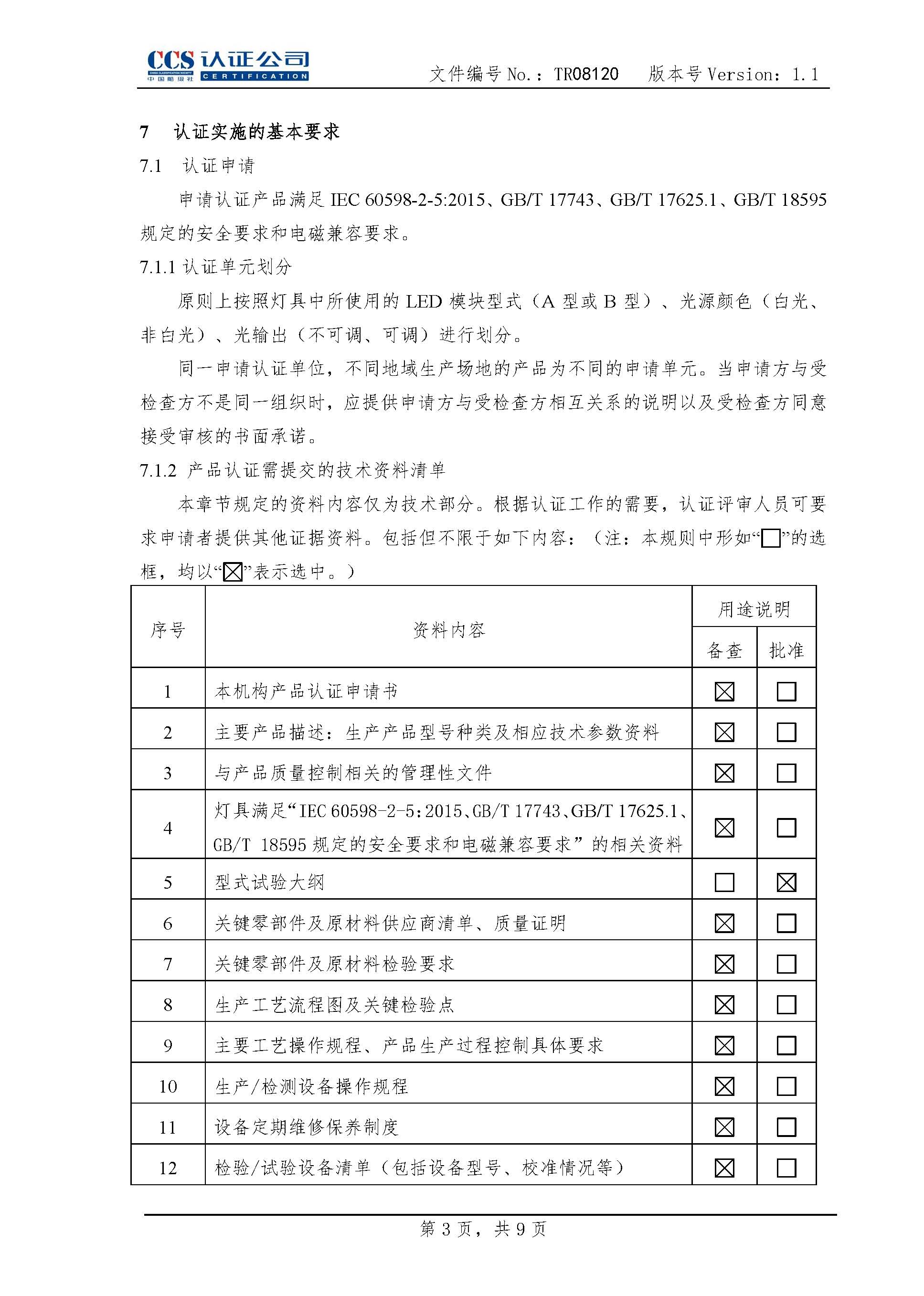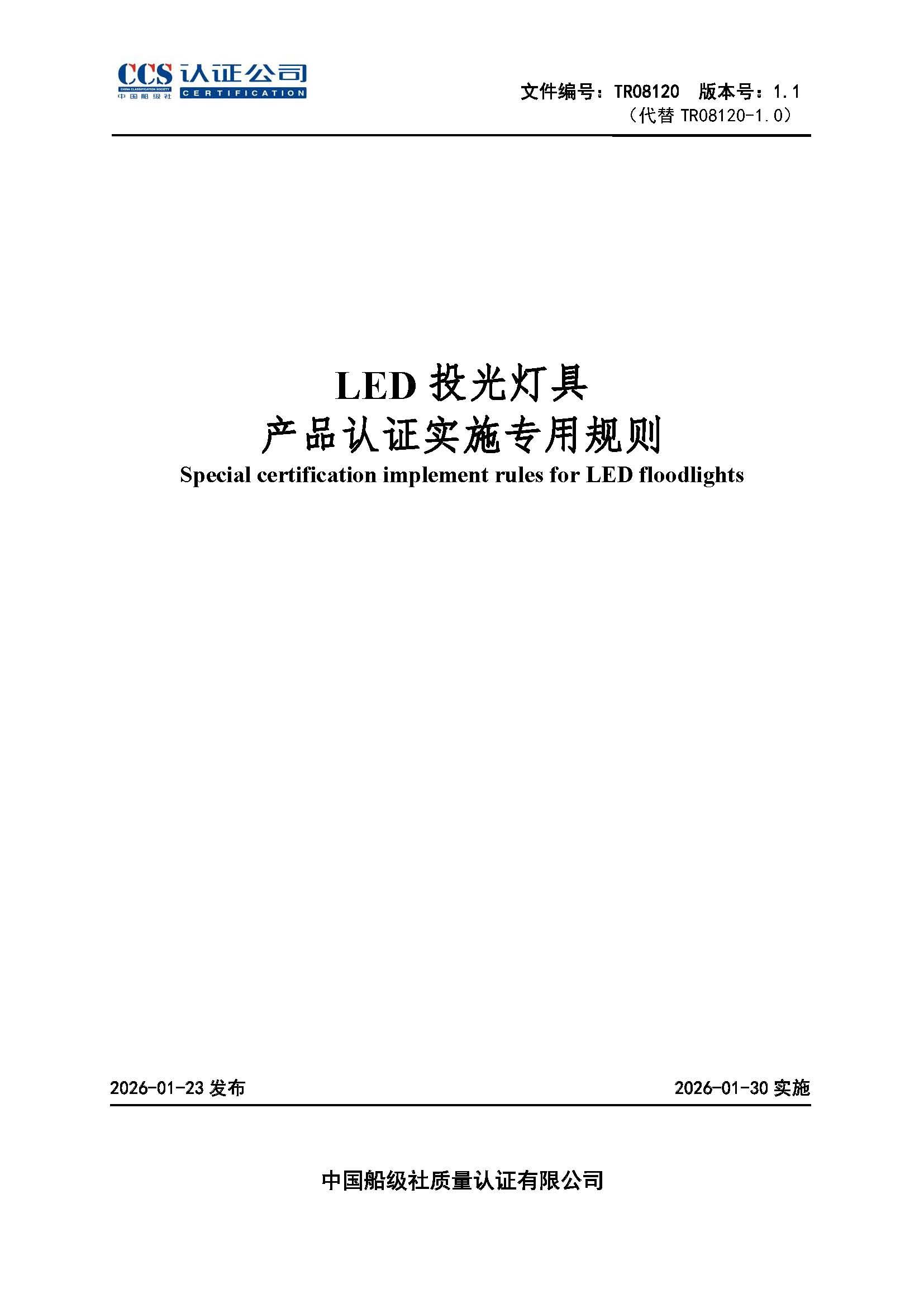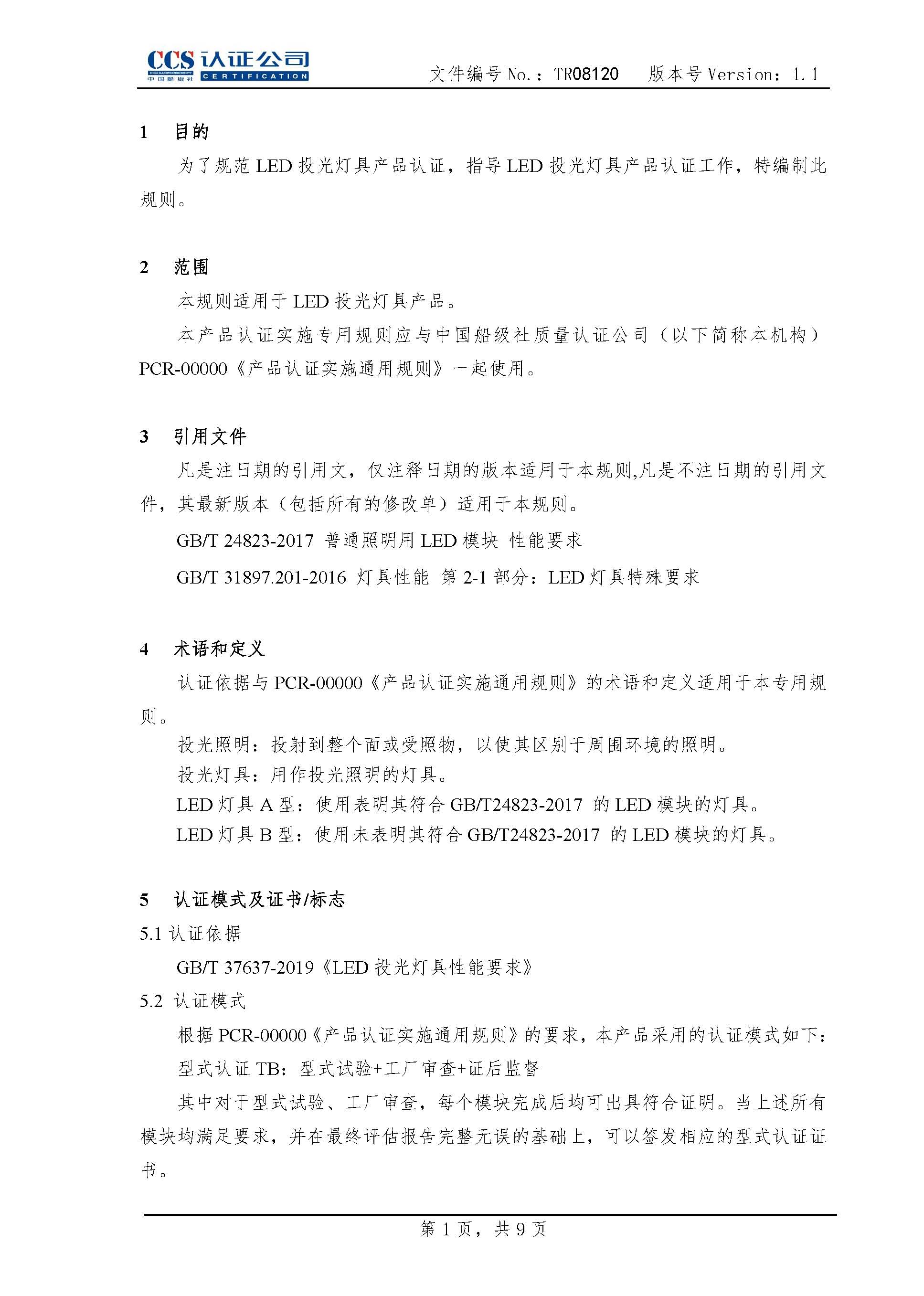 TR08120LED投光灯具产品认证实施专用规则1.1
