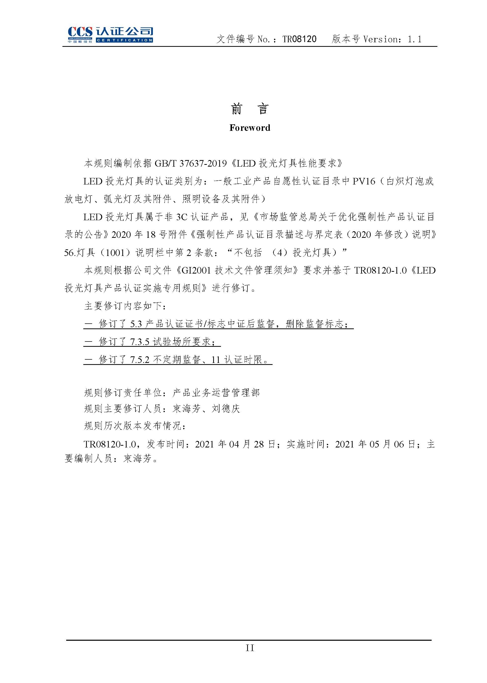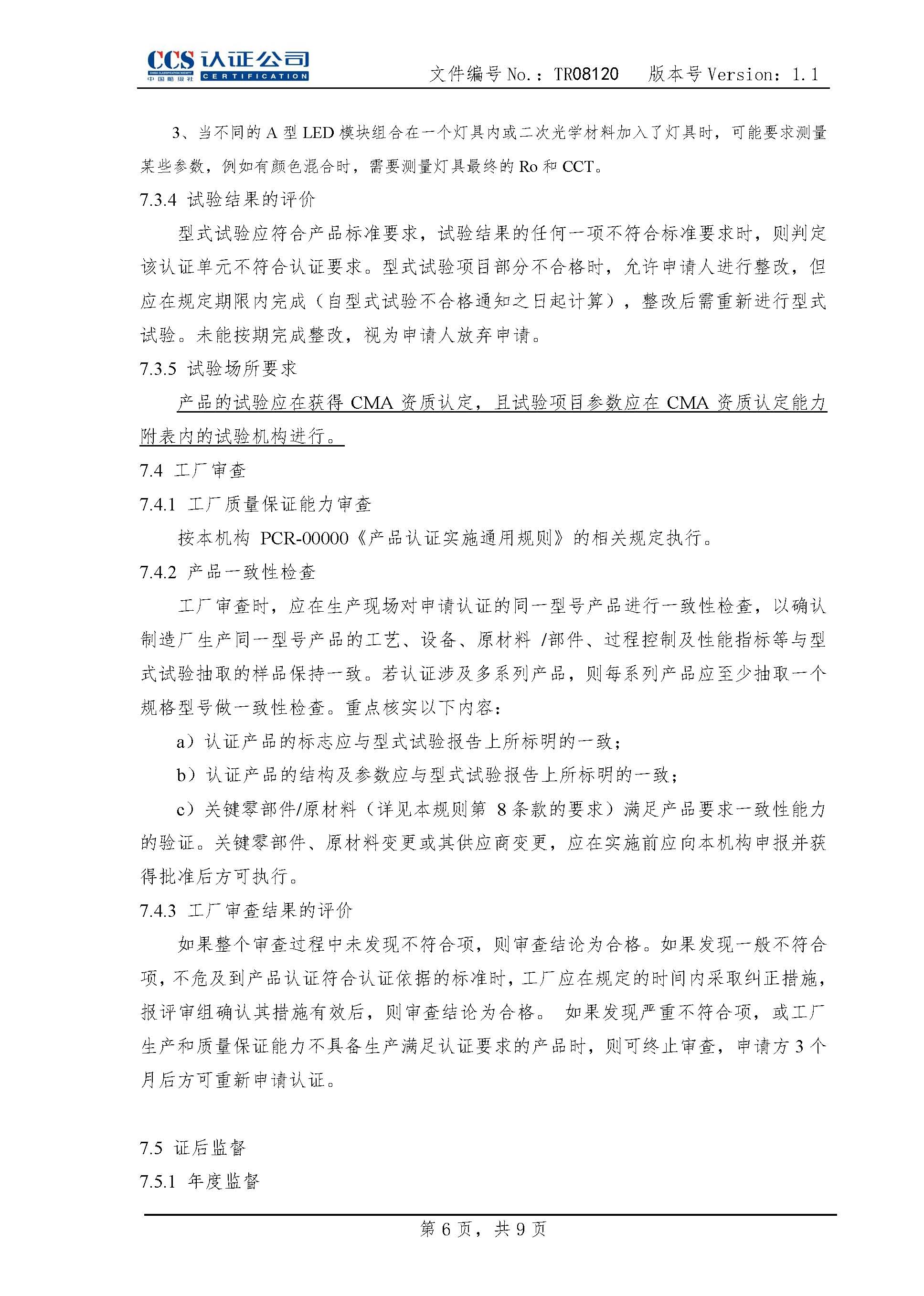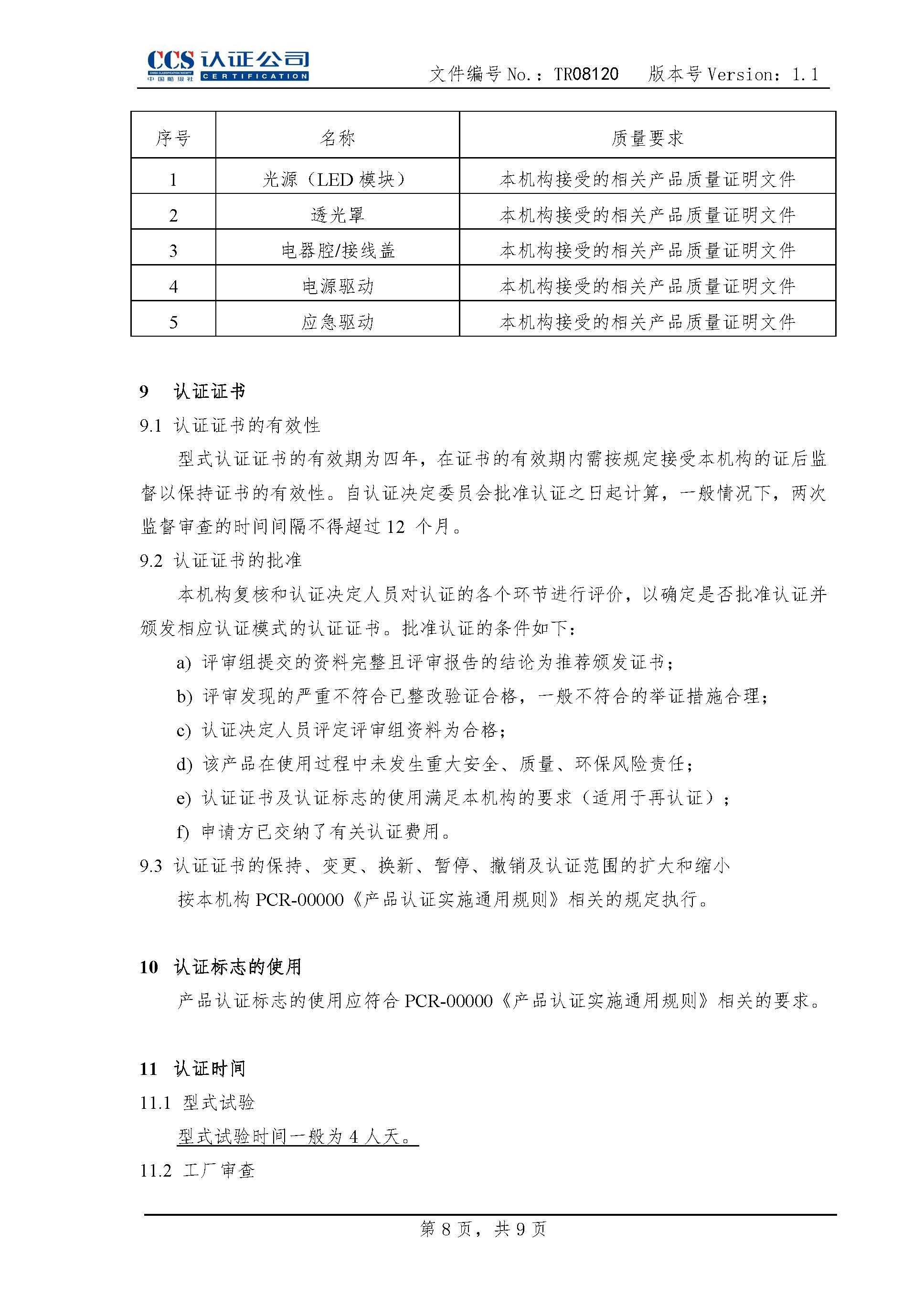 TR08120LED投光灯具产品认证实施专用规则1.1