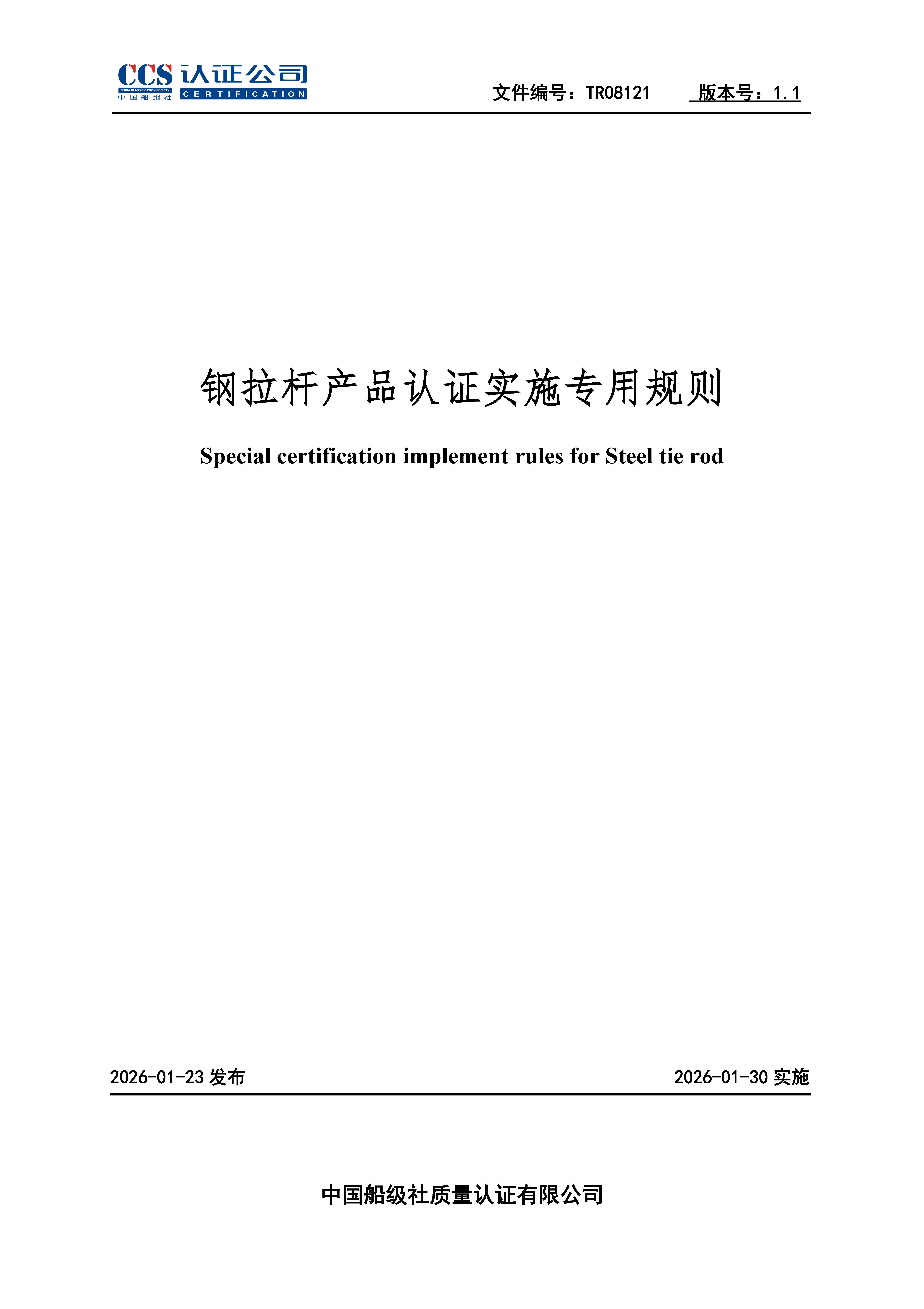 TR08121-1.1 钢拉杆产品认证实施专用规则