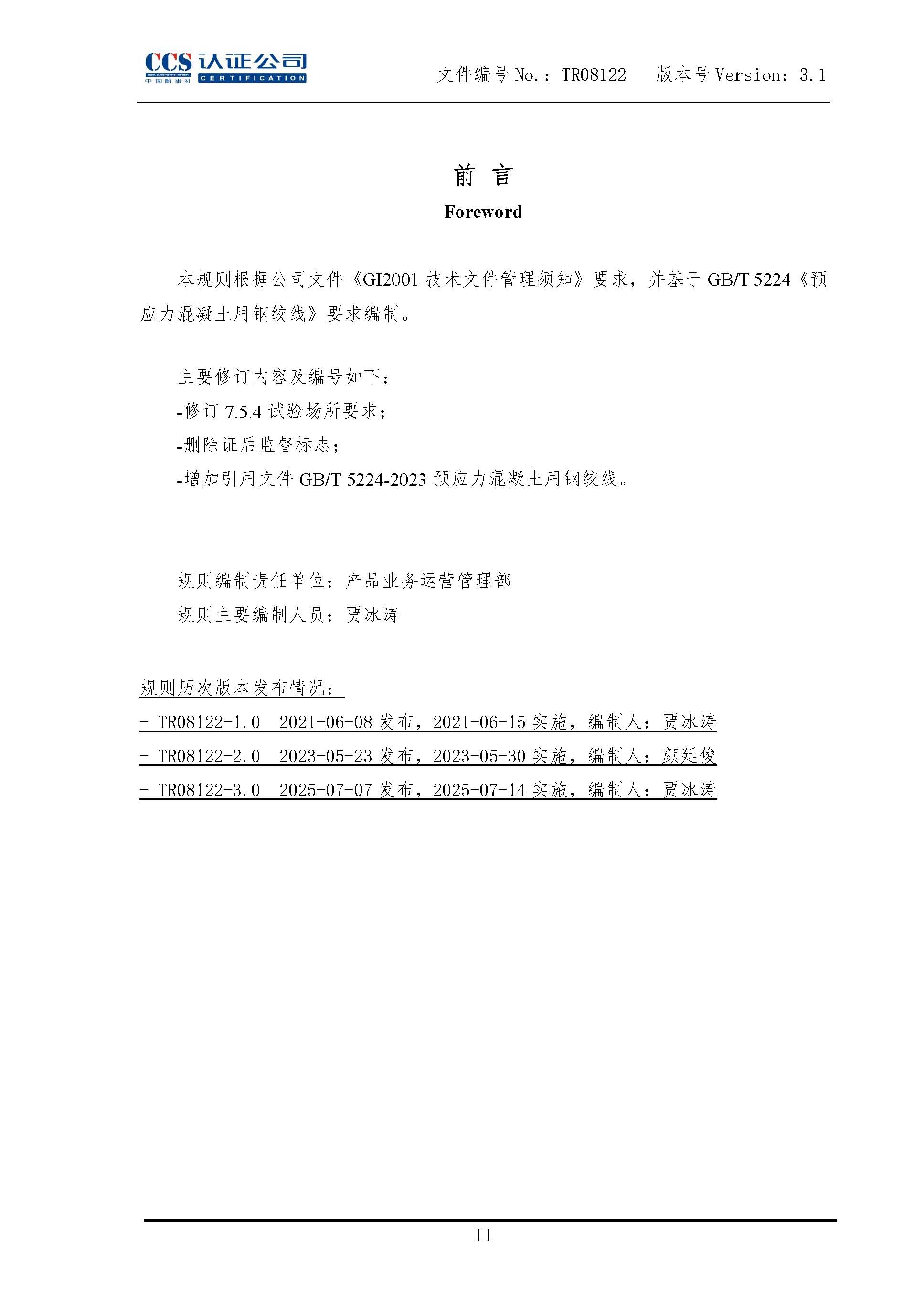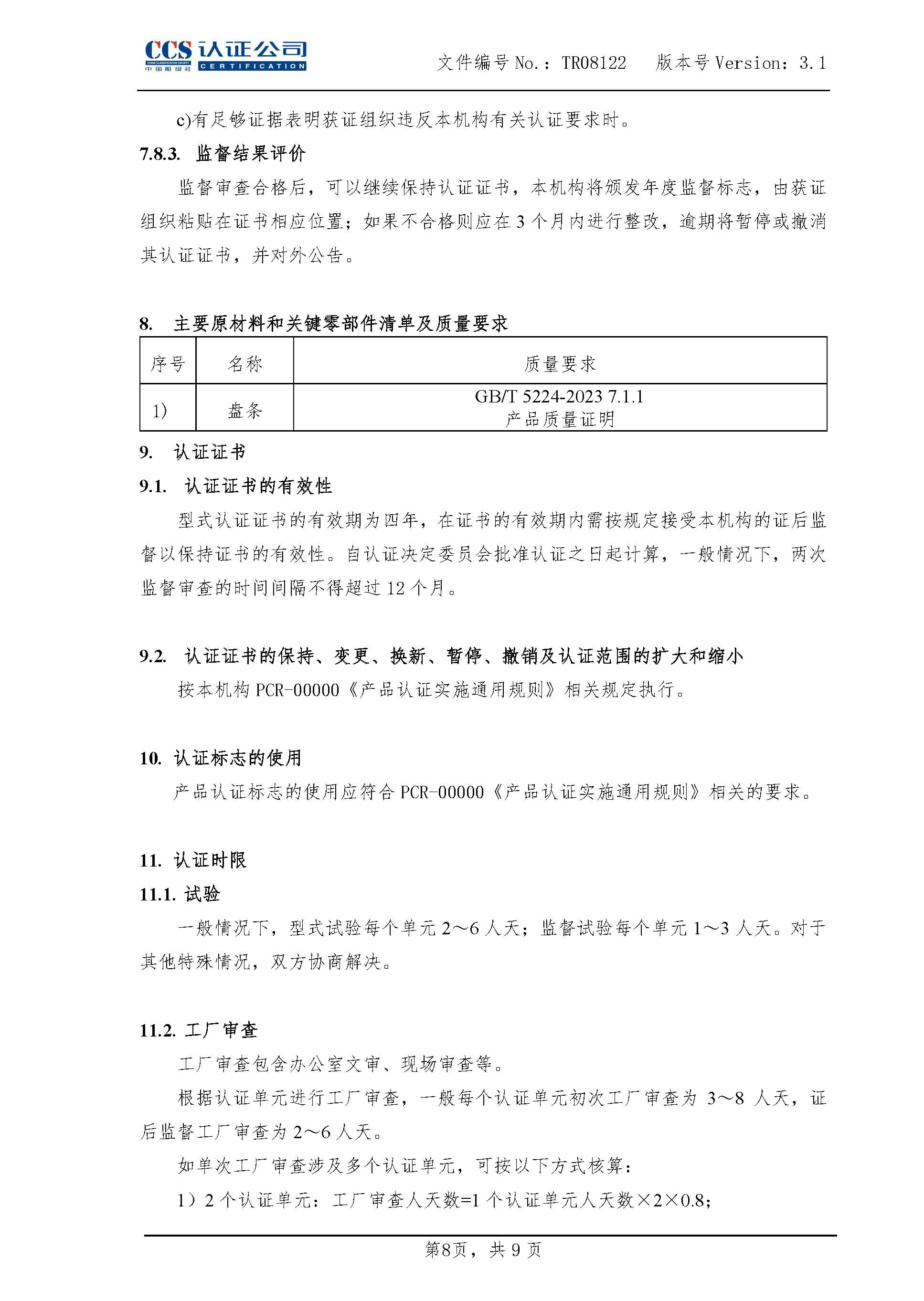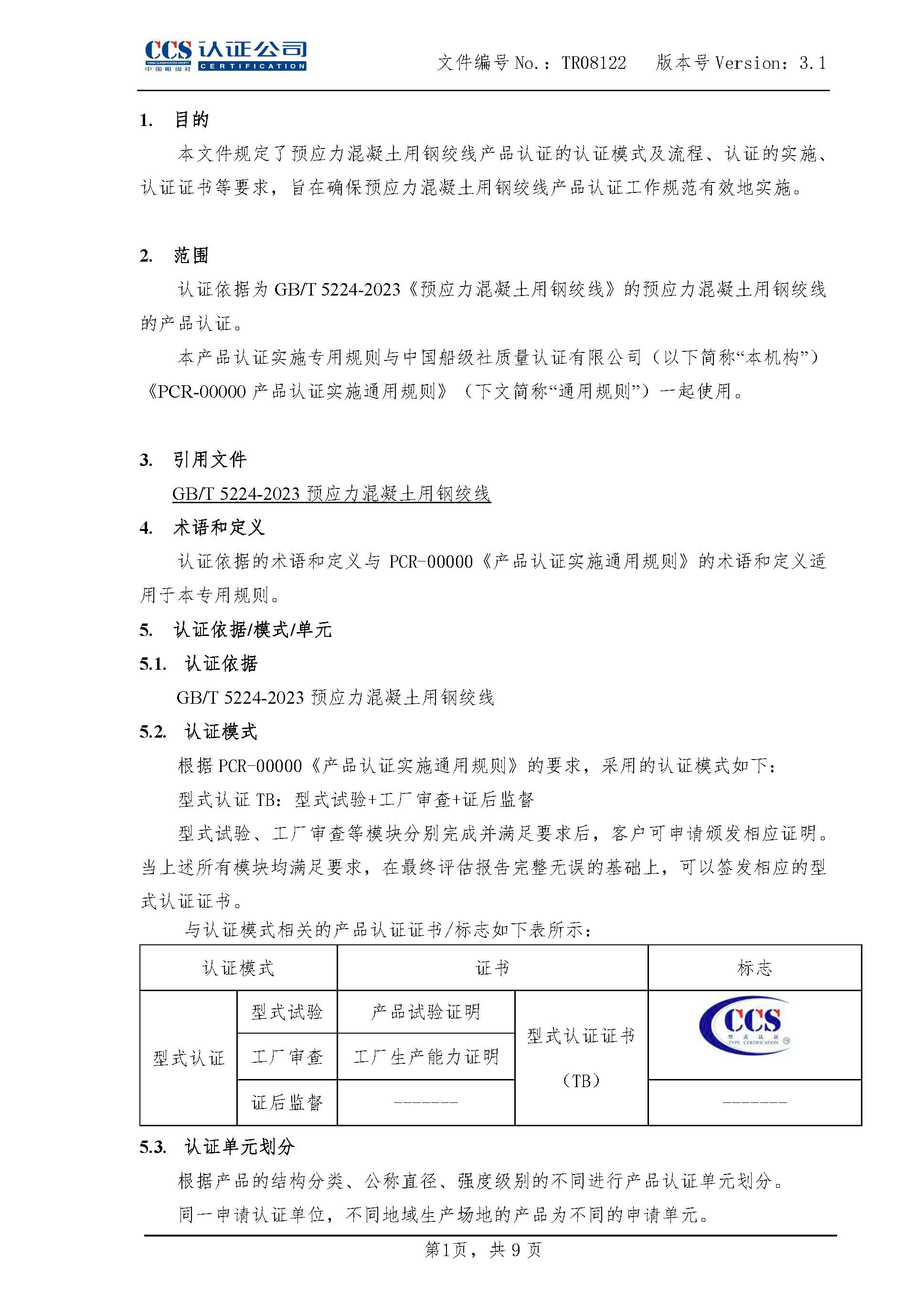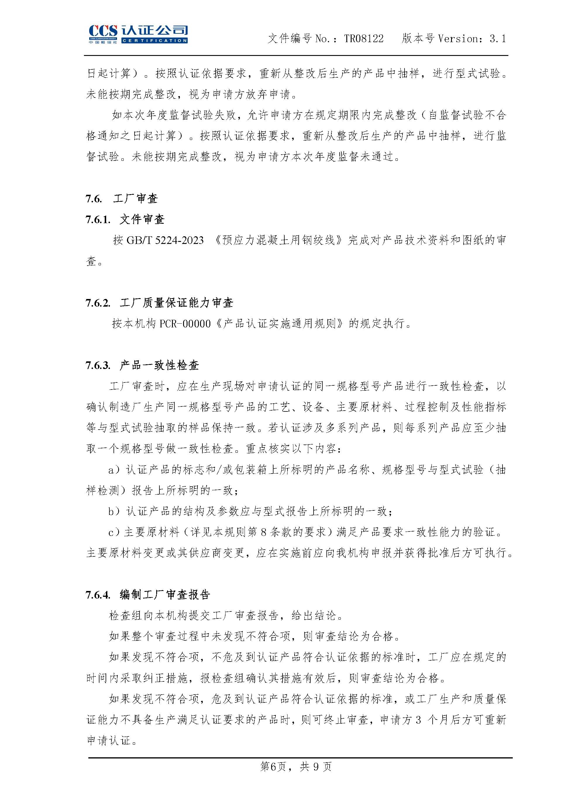 TR08122-3.1预应力混凝土用钢绞线产品认证实施专用规则
