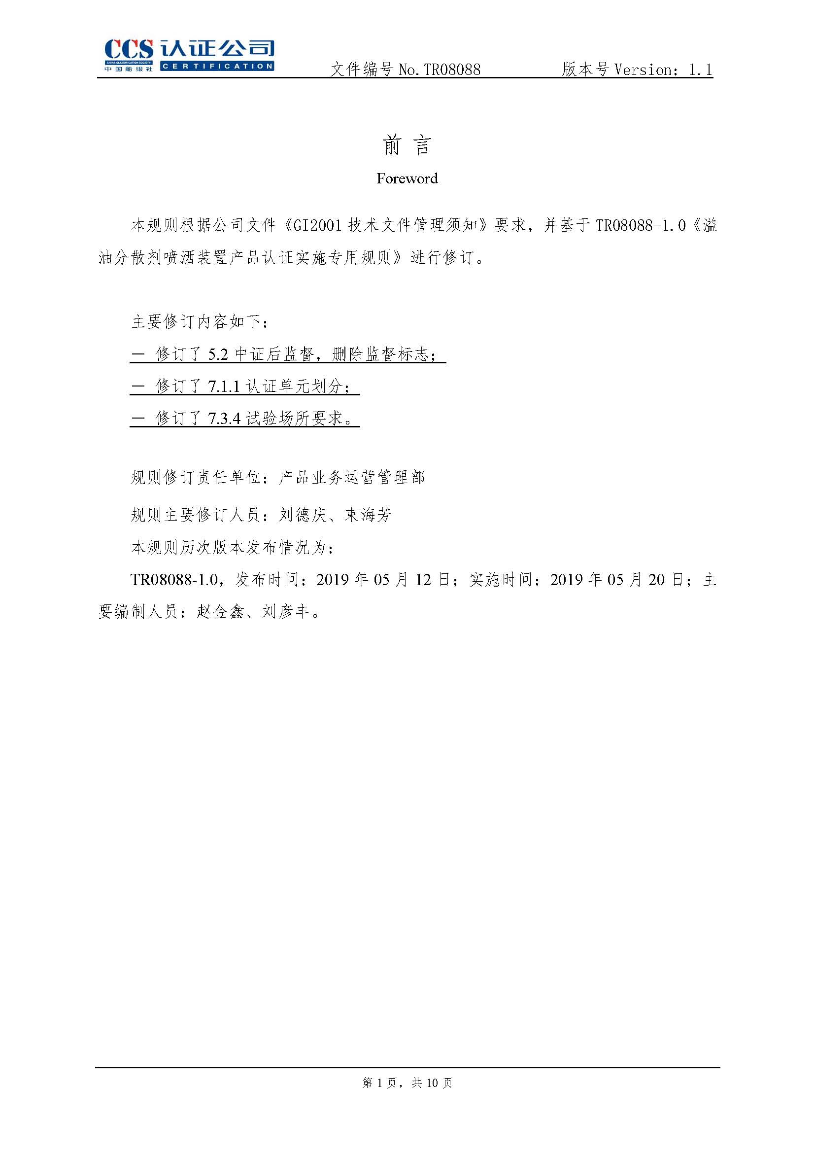 TR08088溢油分散剂喷洒装置专用规则1.1