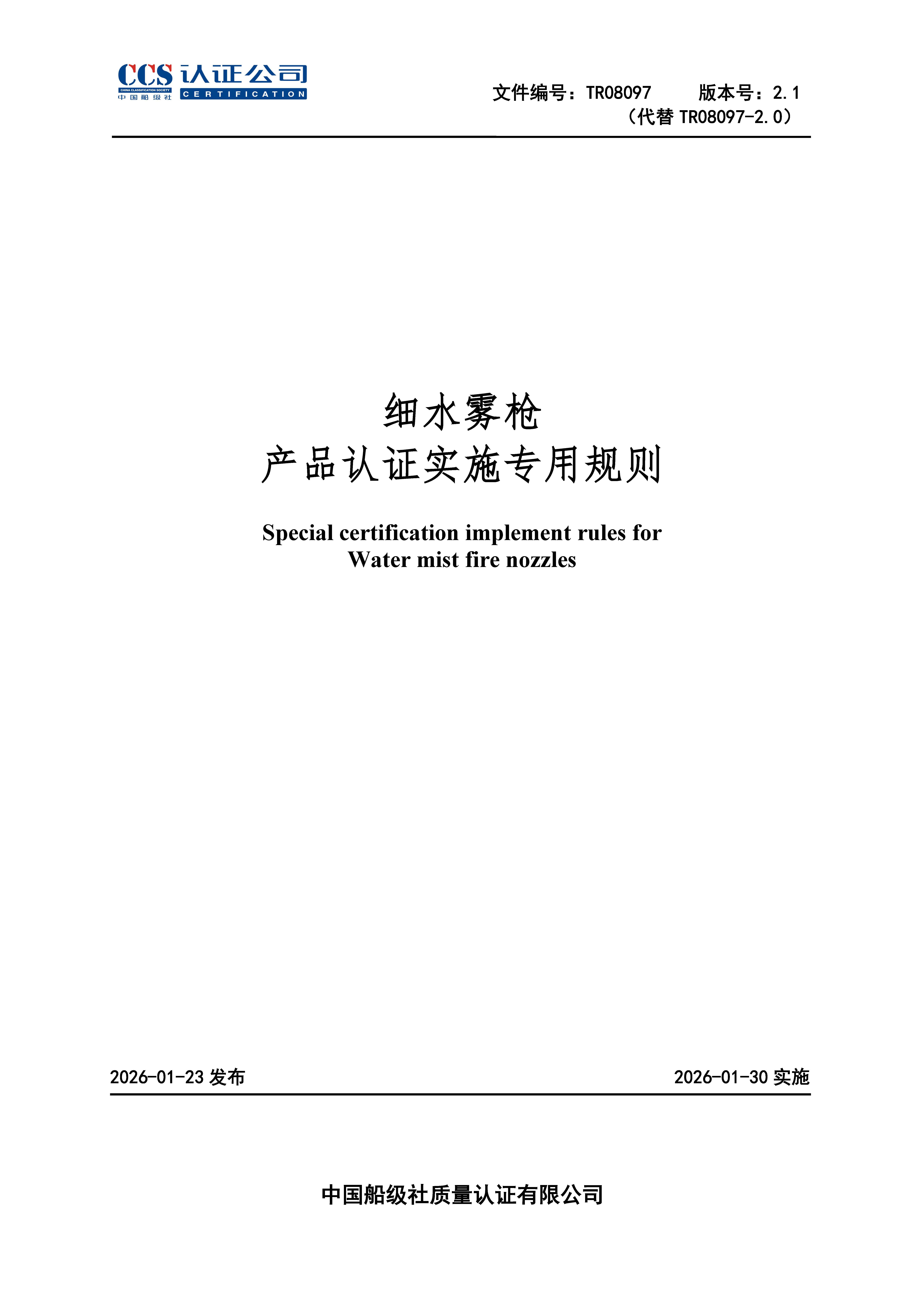 TR08097-2.1细水雾枪产品认证实施专用规则