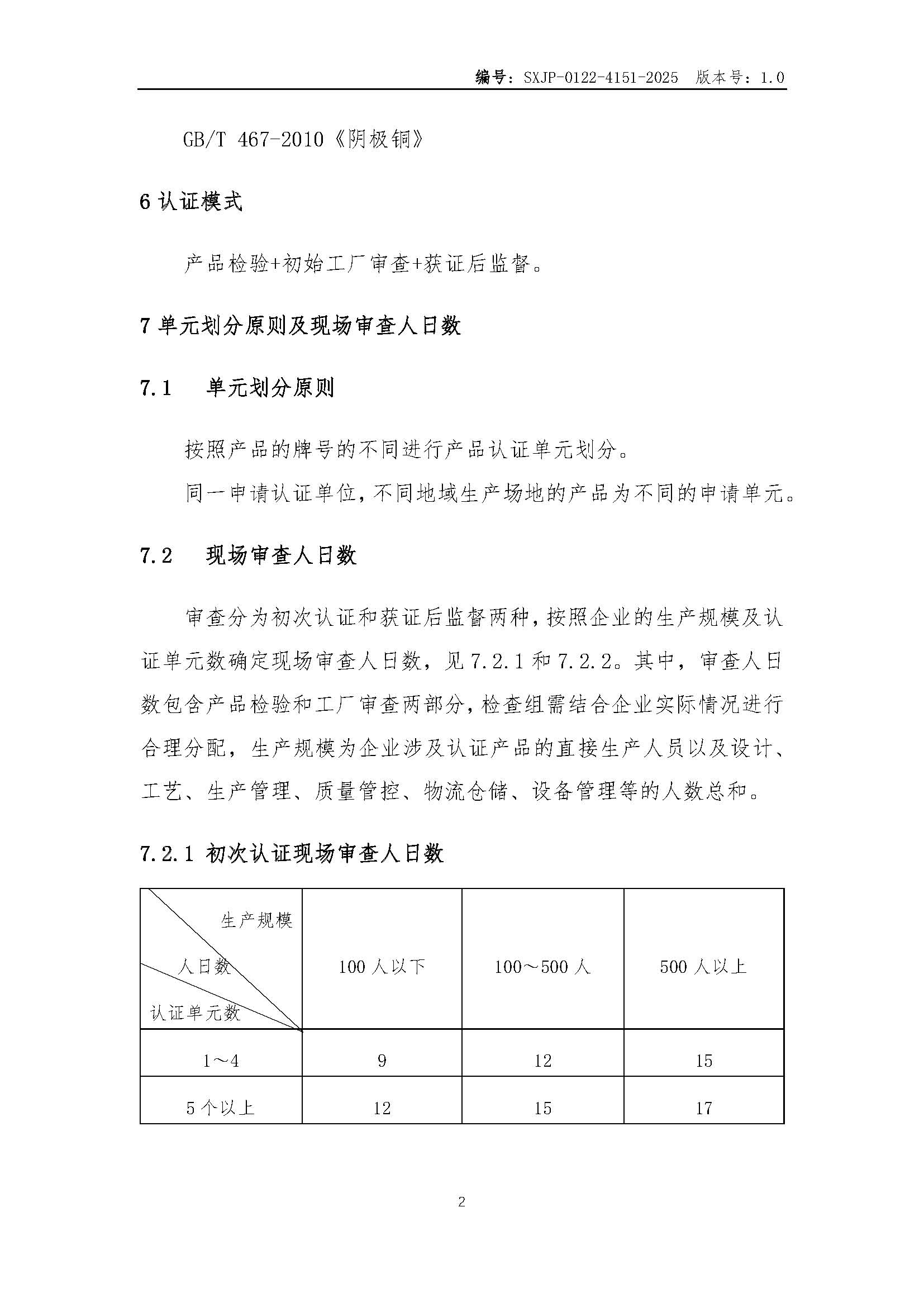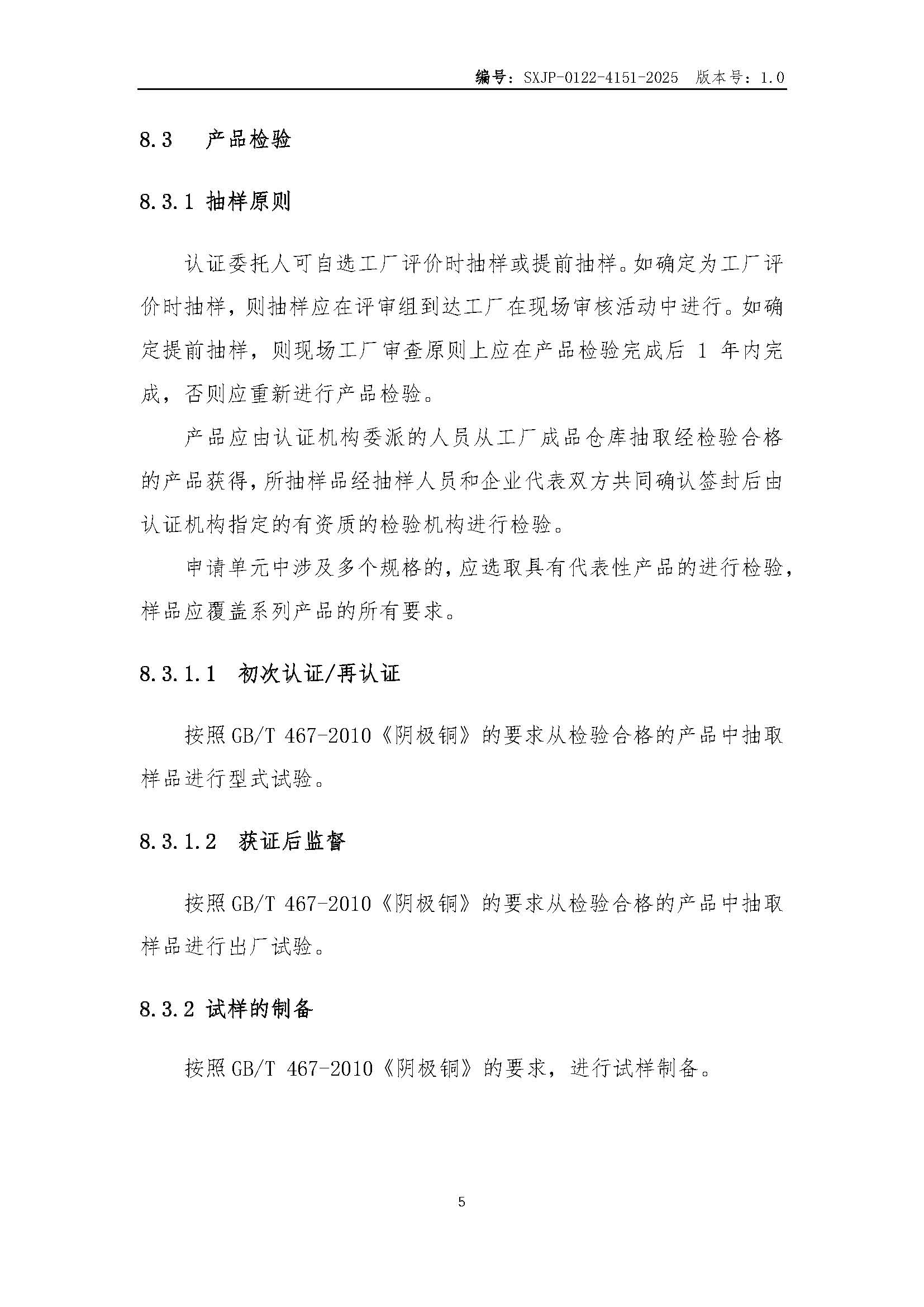 SXJP-0122-4151-2025 “山西精品”认证实施规则 阴极铜