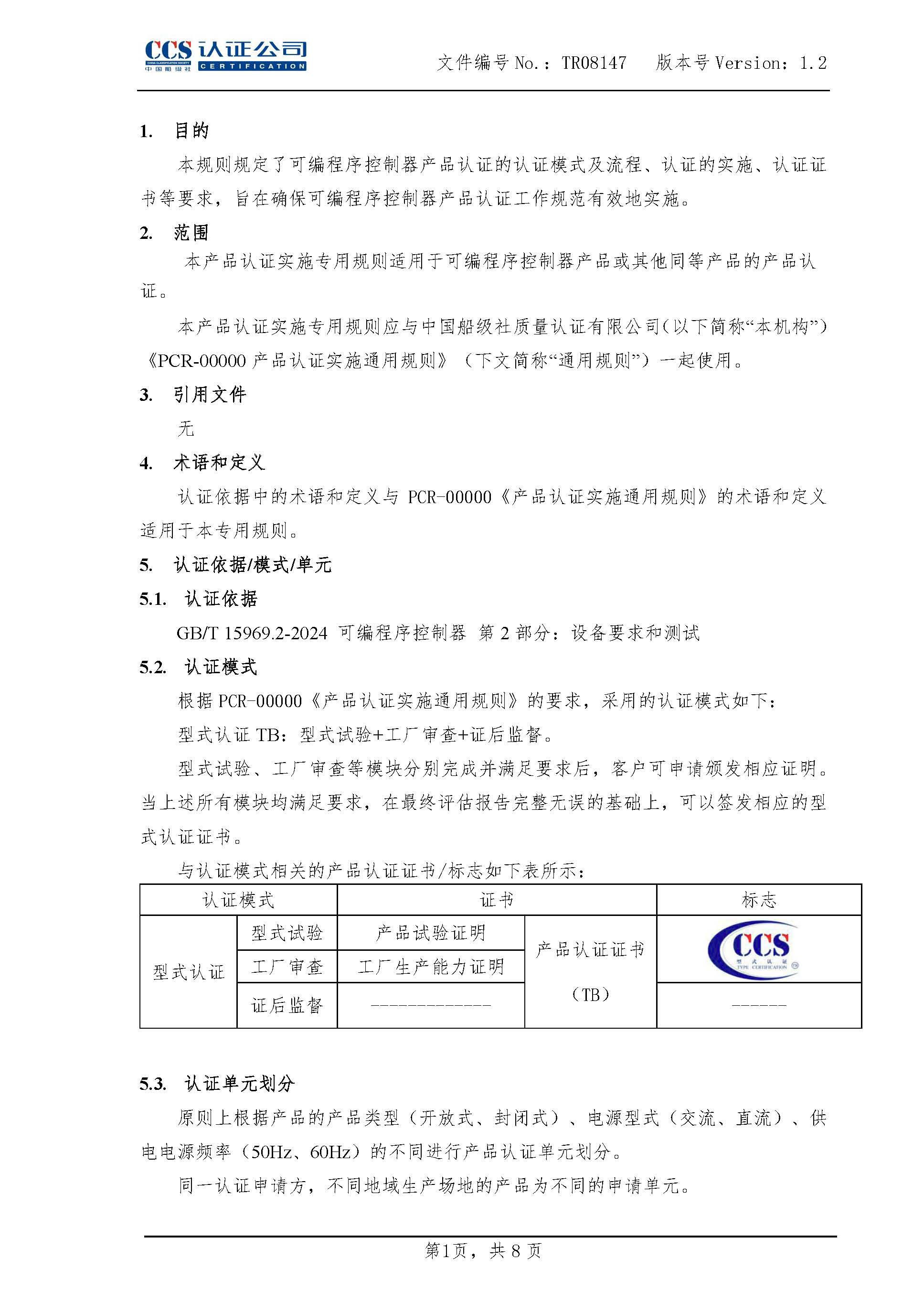 • TR08147-1.2 可编程序控制器产品认证实施专用规则_页面_01.jpg