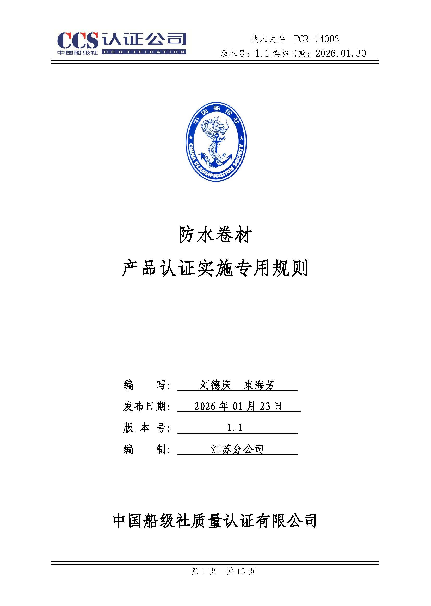 • PCR14002防水卷材产品认证实施专用规则1.1_页面_01.jpg
