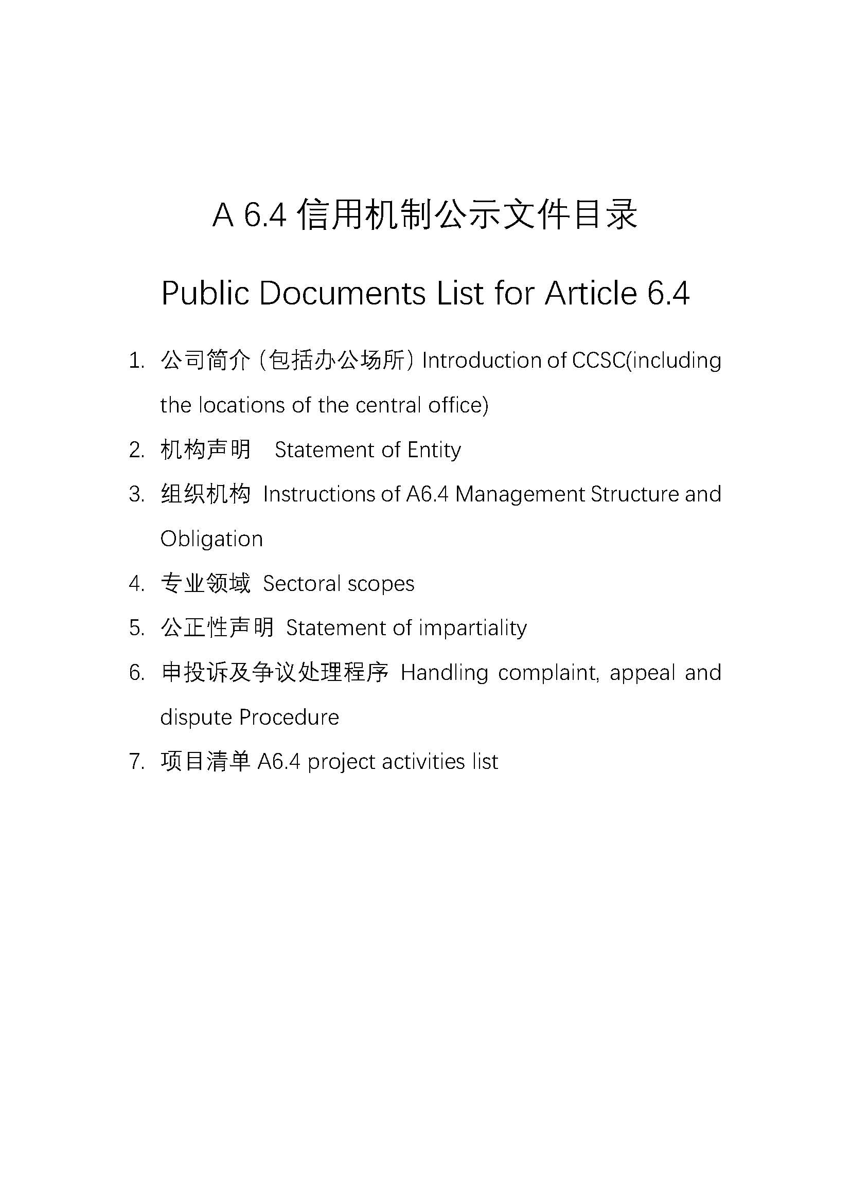 A6.4碳信用机制公开文件 Public Documents for Article 6.4