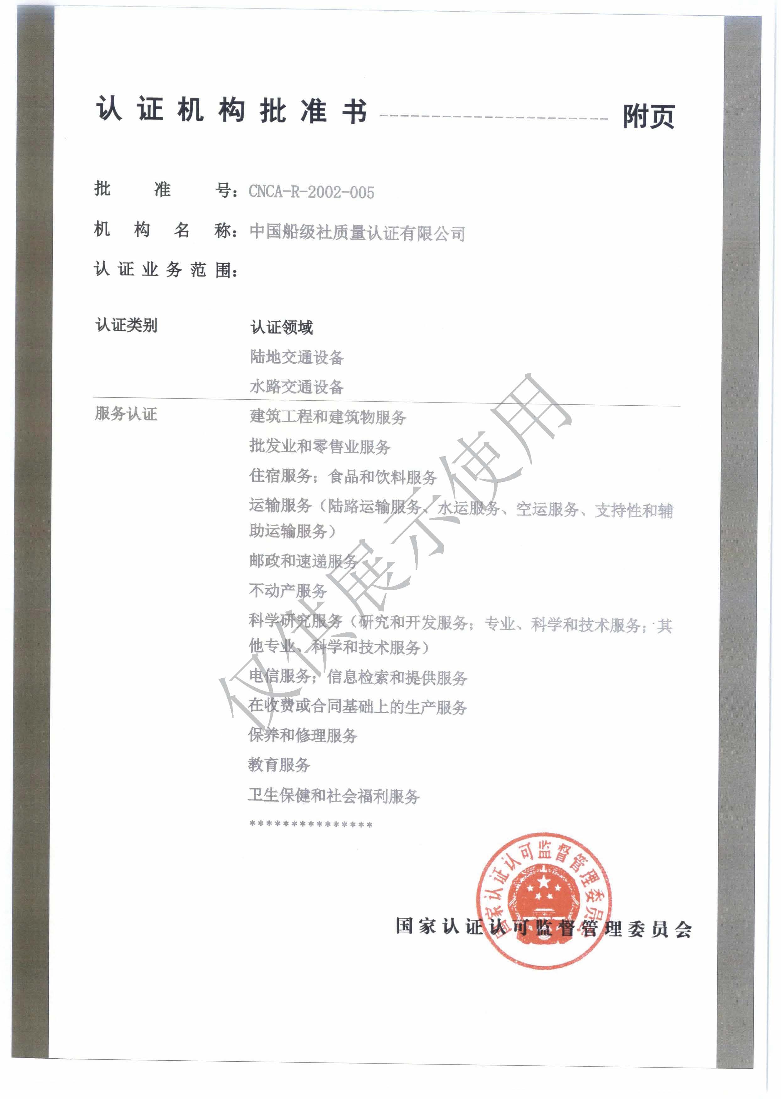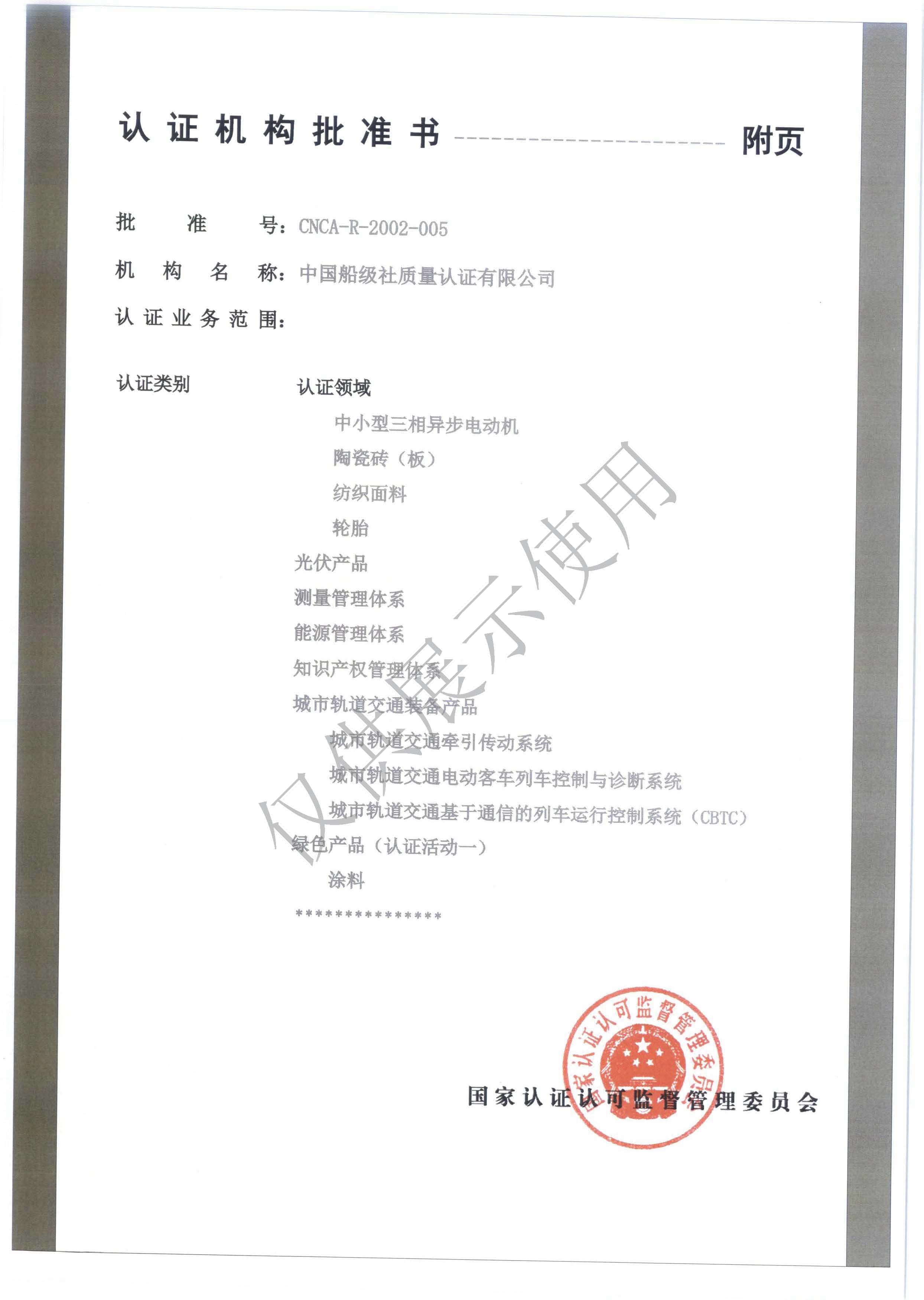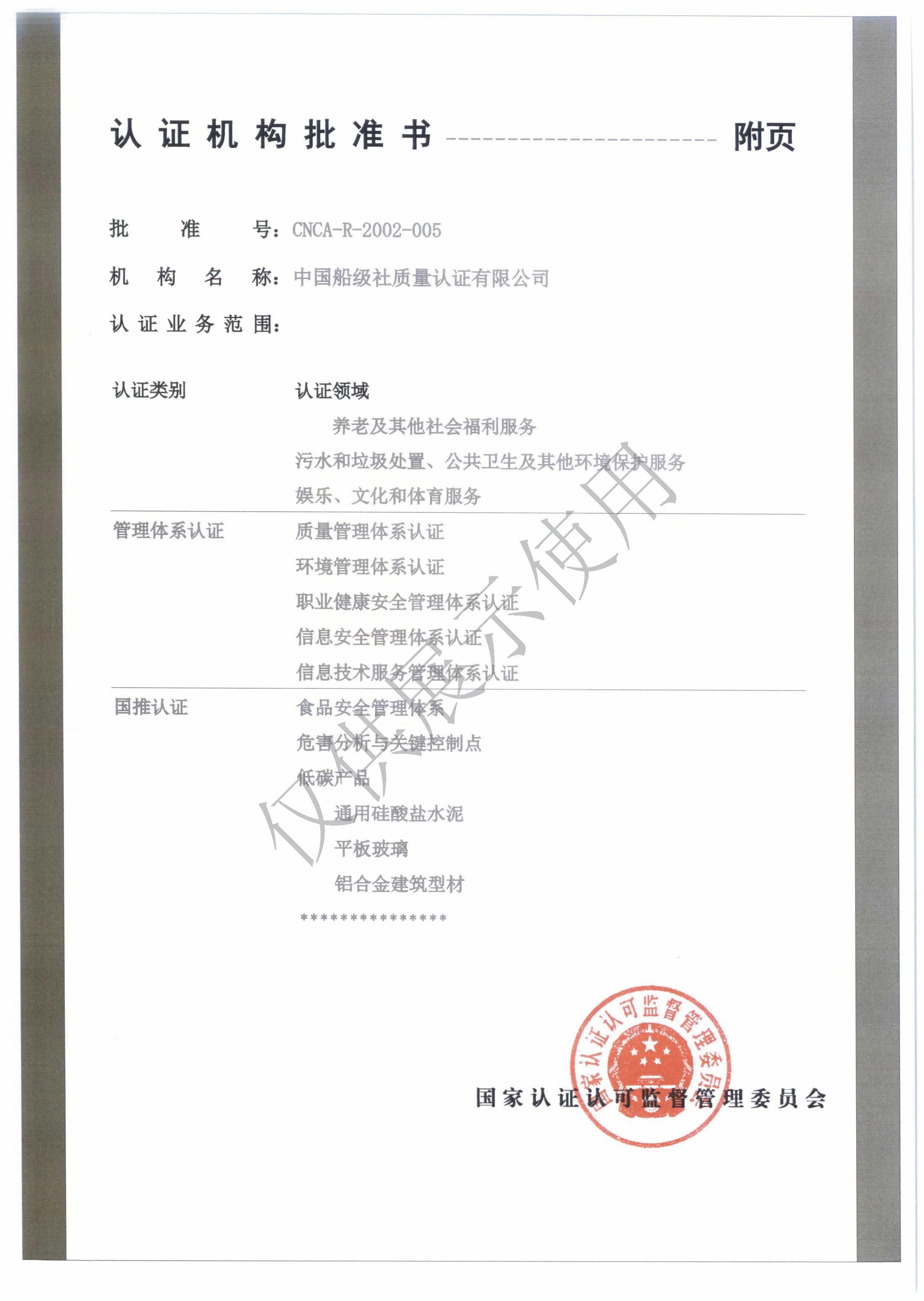 认证机构批准书