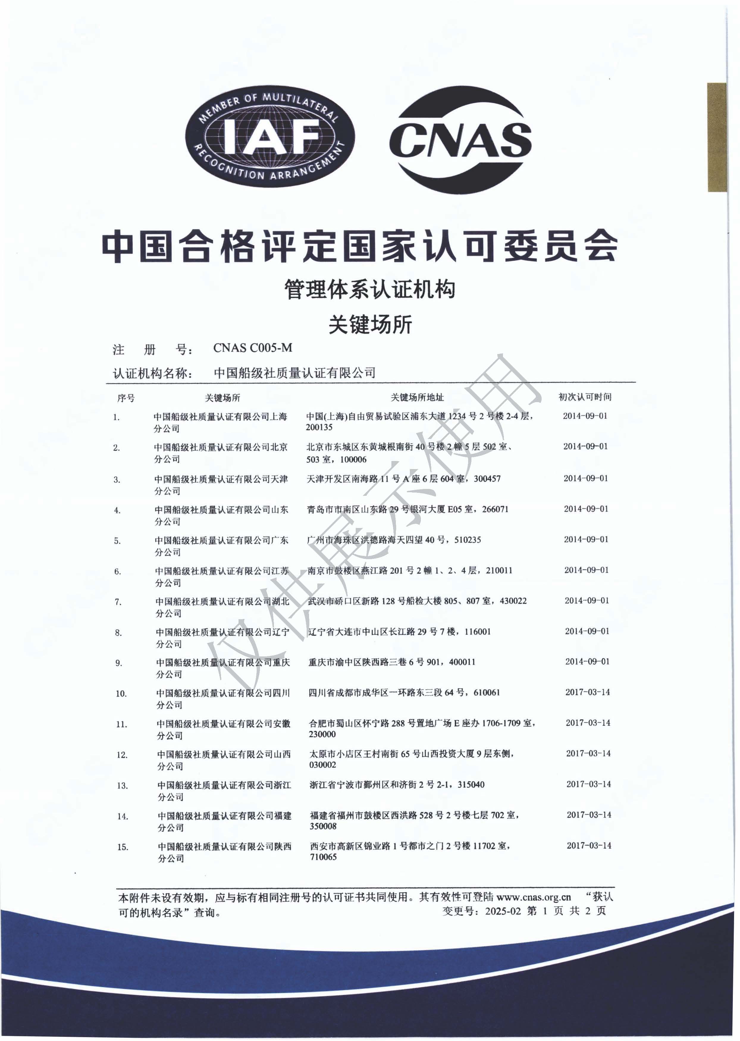 管理体系认证机构认可证书